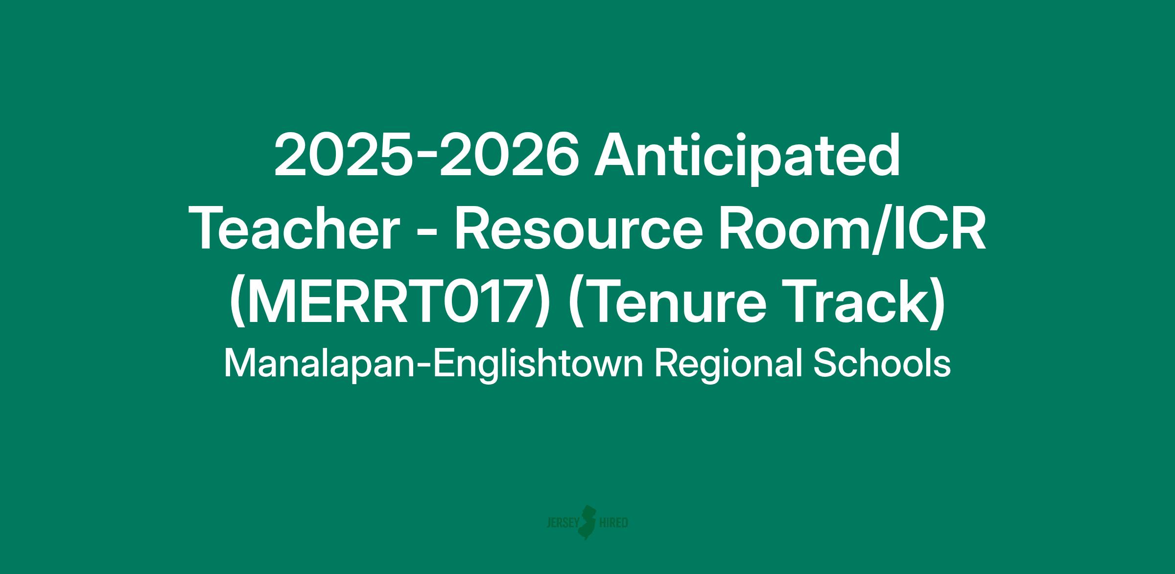 The Manalapan-Englishtown Regional School District, an award winning, Central Monmouth, K-8 school district with a tradition of excellence in education, is seeking a Teacher - Resource Room/ICR for Manalapan-Englishtown Middle School with the following qualifications: