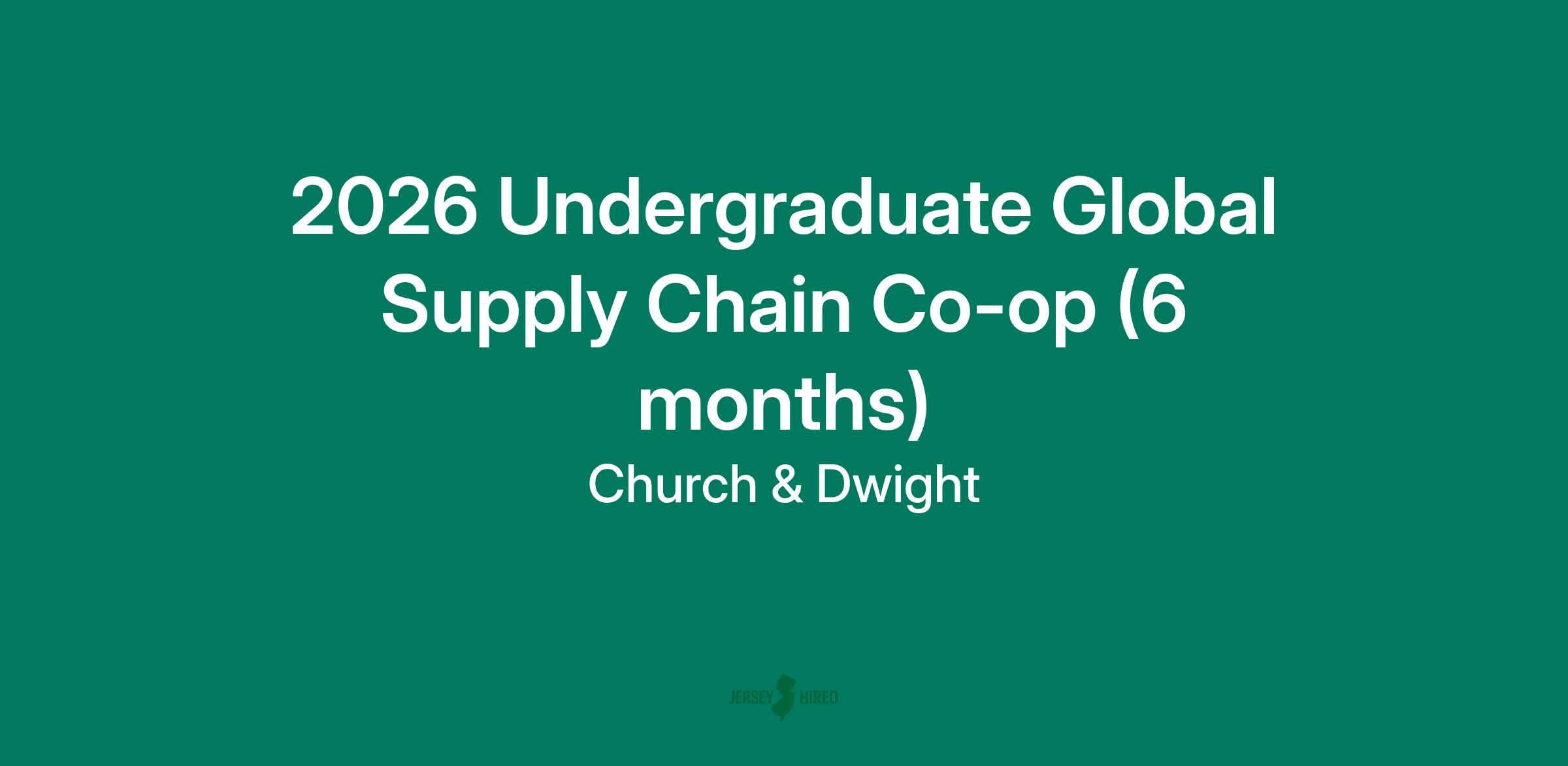 Church & Dwight Co., Inc. is offering 2026 co-op opportunities in our Global Supply Chain department. This 6-month program starts on May 28th, 2026, and includes exposure to leadership, professional development, networking events, and the chance to connect with students throughout various functions.