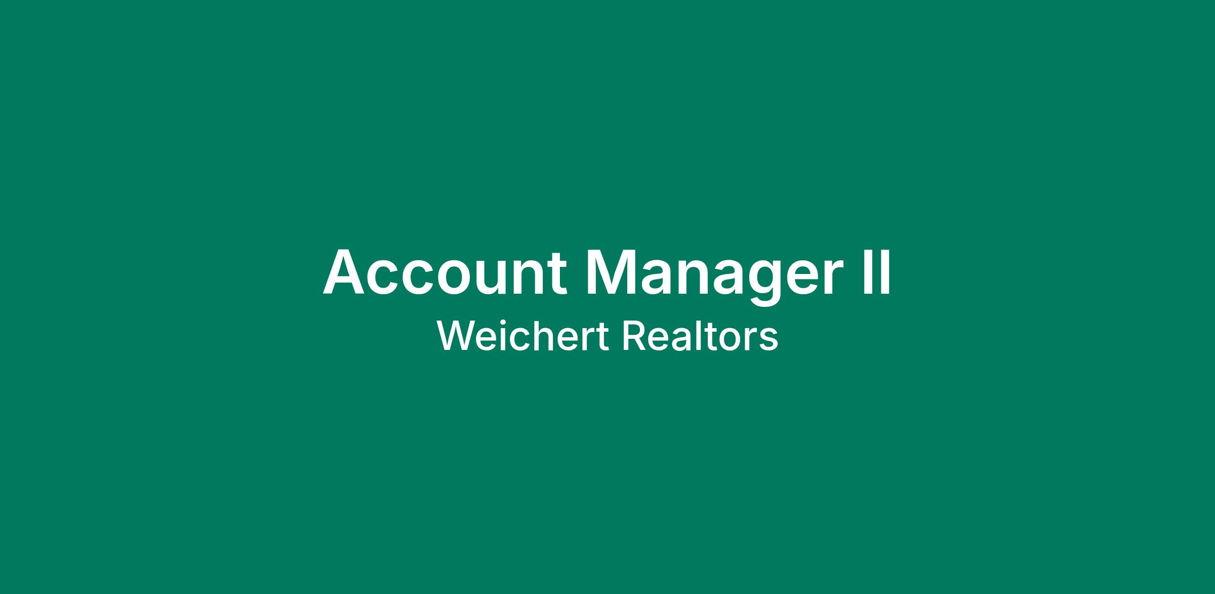 The Account Manager II is responsible for providing excellent customer service to a growing group of clients in multiple states, responding to inbound service requests in all lines of personal lines insurance. The position facilitates client retention by completing annual policy reviews and soliciting additional lines of business to be referred to an Account Executive for conversion. Essential Duties and Responsibilities Provides superior customer service to improve customer loyalty. Addresses clients' service requests and explains coverage and procedures as necessary. Answers client questions and escalates issues as they arise. Actively introduces additional sales opportunities to current clients in order to expand the Agency's book of business and increase policy revenue. Gages client's level of interest and transfers leads to the appropriate Account Executive. Remains up to date on annual reviews, daily follow ups, and meeting referral goals. Assists members of their dedicated sales/service team as needed. Acts as a client advocate in assessing exposures to risk and providing recommendations to cover potential insurable losses. Ensures the customer's policy is based on value, not specifically based on price. Re-markets those customers where price and other circumstance suggest alternative carriers are needed. Negotiates with Underwriters and works seamlessly with other Agency colleagues to complete transactions according to agency workflows and procedures. Understands and follows the Agency's quality and compliance procedures, workflows, and goals. Adheres to all published agency standards for all new policies and renewal policies. Secures client acknowledgement and agreement to any that do not meet current standards. Remains in compliance with all WIA carrier guidelines and binding authority limits. Participates in an active and engaged manner in all Agency activities, training courses, meetings, and corporate events as assigned or directed by management. Completes all assignments, correspondence, pending follow ups, quotes, calls and computer work on time and error-free. Ensures all phone calls are returned by close of business day. Promotes teamwork and a positive and inclusive work environment with all staff at all levels of the organization. Performs other duties as assigned. Minimum Qualifications Education, Certification, and License Requirements High school diploma or GED Property and Casualty Insurance License required Experience A minimum of three (3) years of relevant insurance work experience Knowledge, Skills, and Abilities Excellent customer service skills Ability to recognize opportunities and refer accordingly for conversion Ability to maintain high ethical standards and quality service to ensure success Proficiency in Microsoft Office suite of products Strong oral and written communications skills Ability to multitask in a fast-paced environment Basic math skills including addition, subtraction, multiplication, division, percentages, and fractions Strong attention to detail Knowledge and ability to use typical office equipment (PC, calculator, fax machine, etc.) The estimated base salary range for this position is from $55,000 to $65,000 (annually). The rate of pay offered will be dependent upon several factors including but not limited to the candidate's relevant skills, education, work experience, job location/geographic region, and/or certifications. Weichert offers a comprehensive suite of benefit programs to all eligible employees, including medical, dental, and vision insurance, life and disability coverage, 401(k) retirement savings, Paid Time Off (PTO), Flexible Spending Accounts (FSA), and much more.