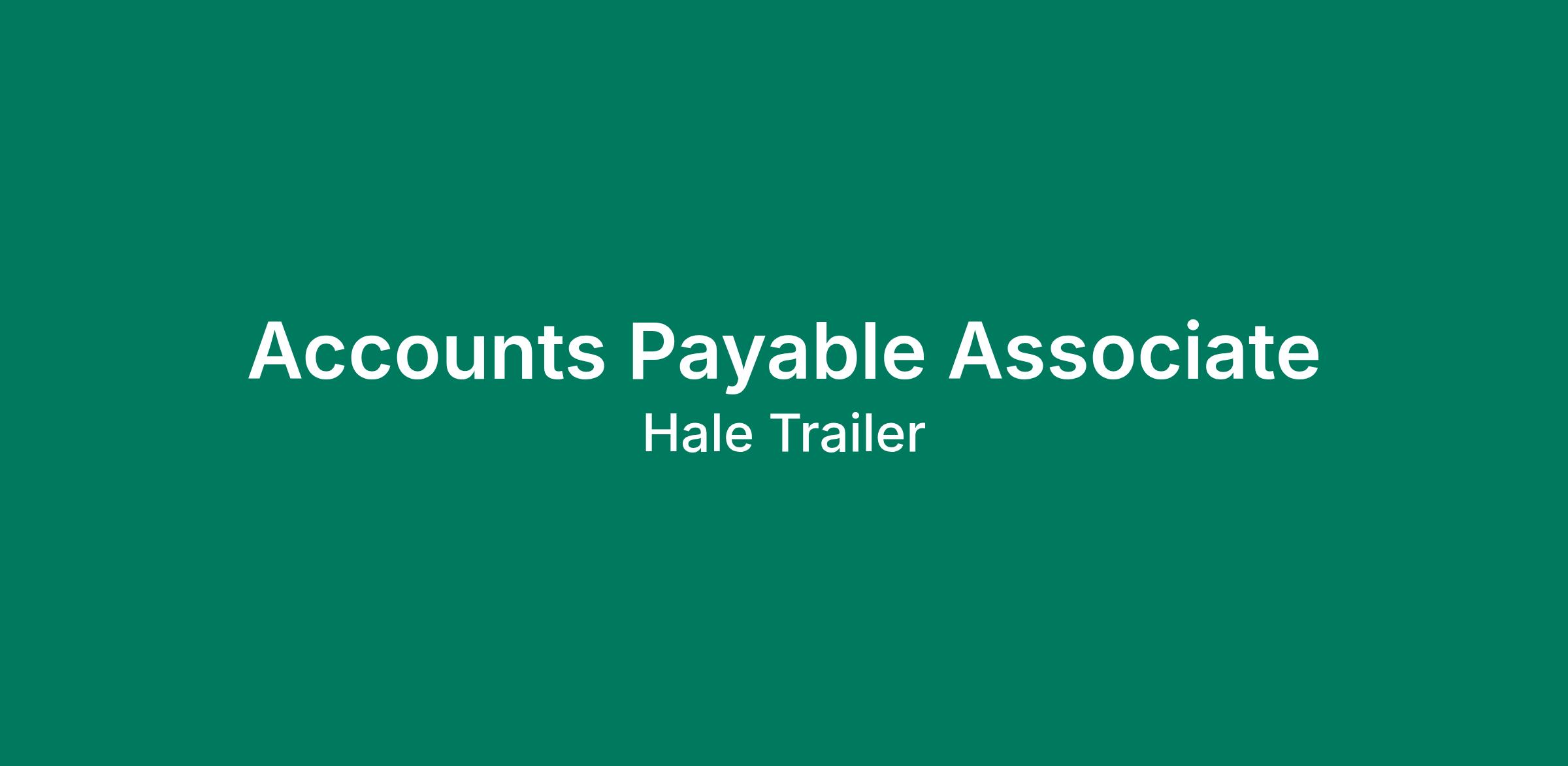 Hale Trailer Brake & Wheel, Inc is a multi-location, full-service trailer dealership with an immediate opening at its corporate offices in West Berlin, NJ. The ideal candidate is service, and detail oriented and is highly proficient in data entry and has exceptional analytical skills. The primary role in the position is recording, processing, and reconciling accounts payable invoices. Hale is an industry leading, family friendly company offering a challenging and fulfilling career opportunity with an attractive work/life balance.