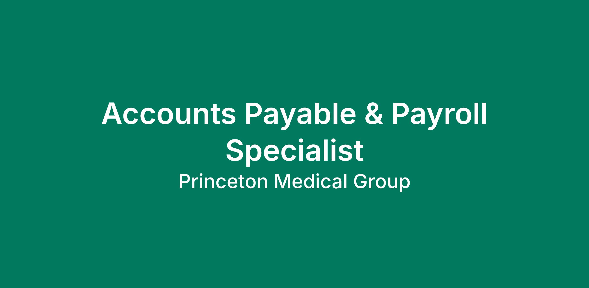 Are you looking for an Accounts Payable & Payroll Specialist position in an office setting? At Princeton Medical Group, we are looking for dedicated individuals to join our dynamic team to support our wide variety of medical specialties!