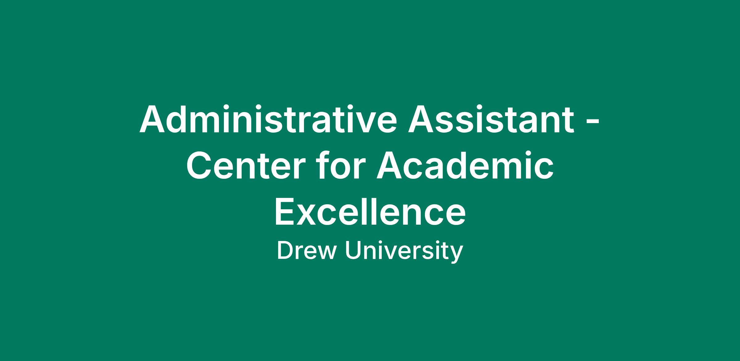 Drew University an Administrative Assistant in the Center for Academic Excellence (CAE). Reporting to the Associate Provost, the Administrative Assistant will support a dynamic team in the Center for Academic Excellence unit. A strong commitment to student success is essential, as is the ability to manage multiple responsibilities in a fast-paced environment, interacting with students, faculty, and parents, while handling sensitive and confidential information with discretion.