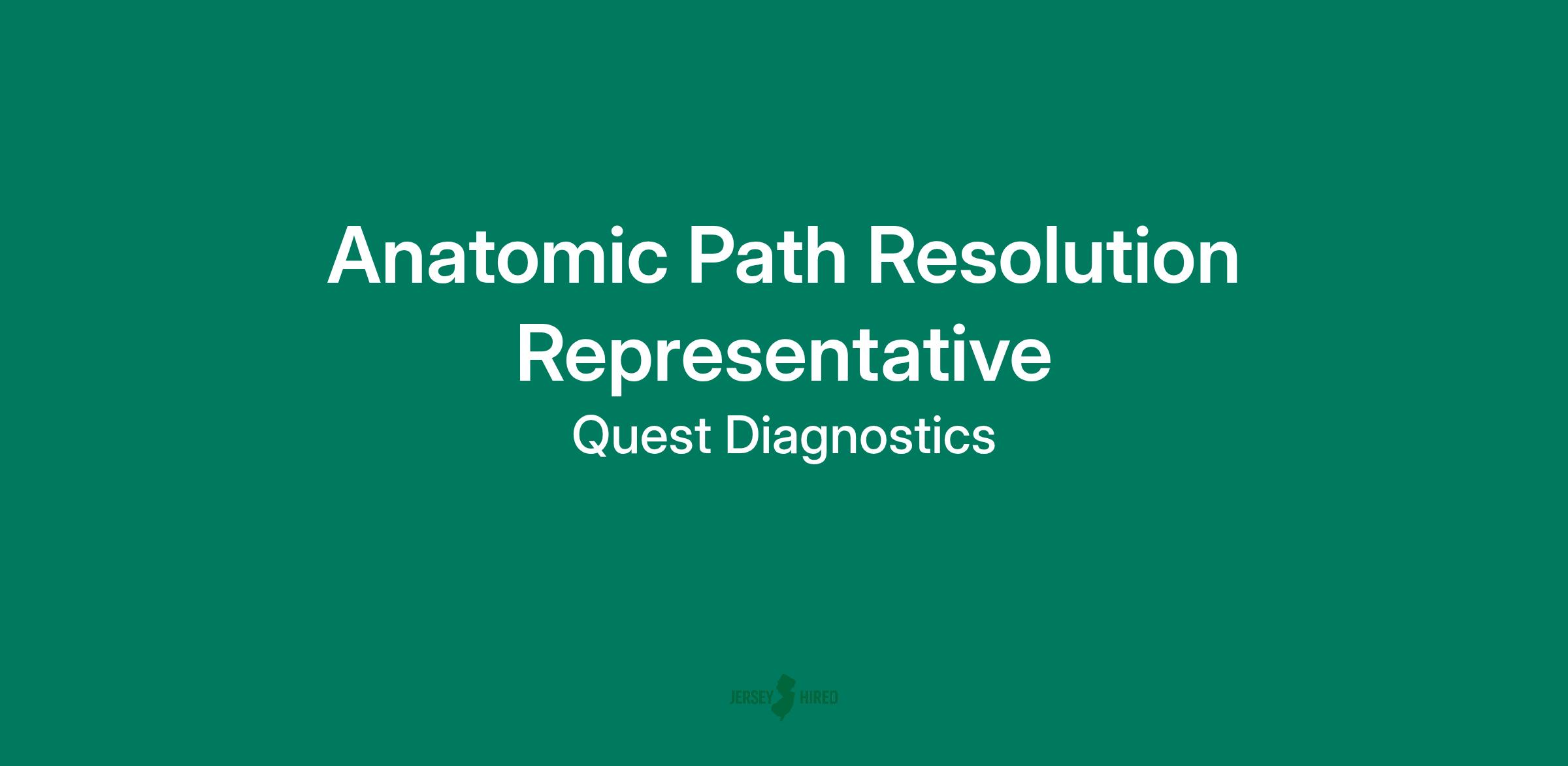 DescriptionAnatomic Path Resolution Representative - Clifton, NJ, Monday to Friday, 8:00 AM to 5:00 PM