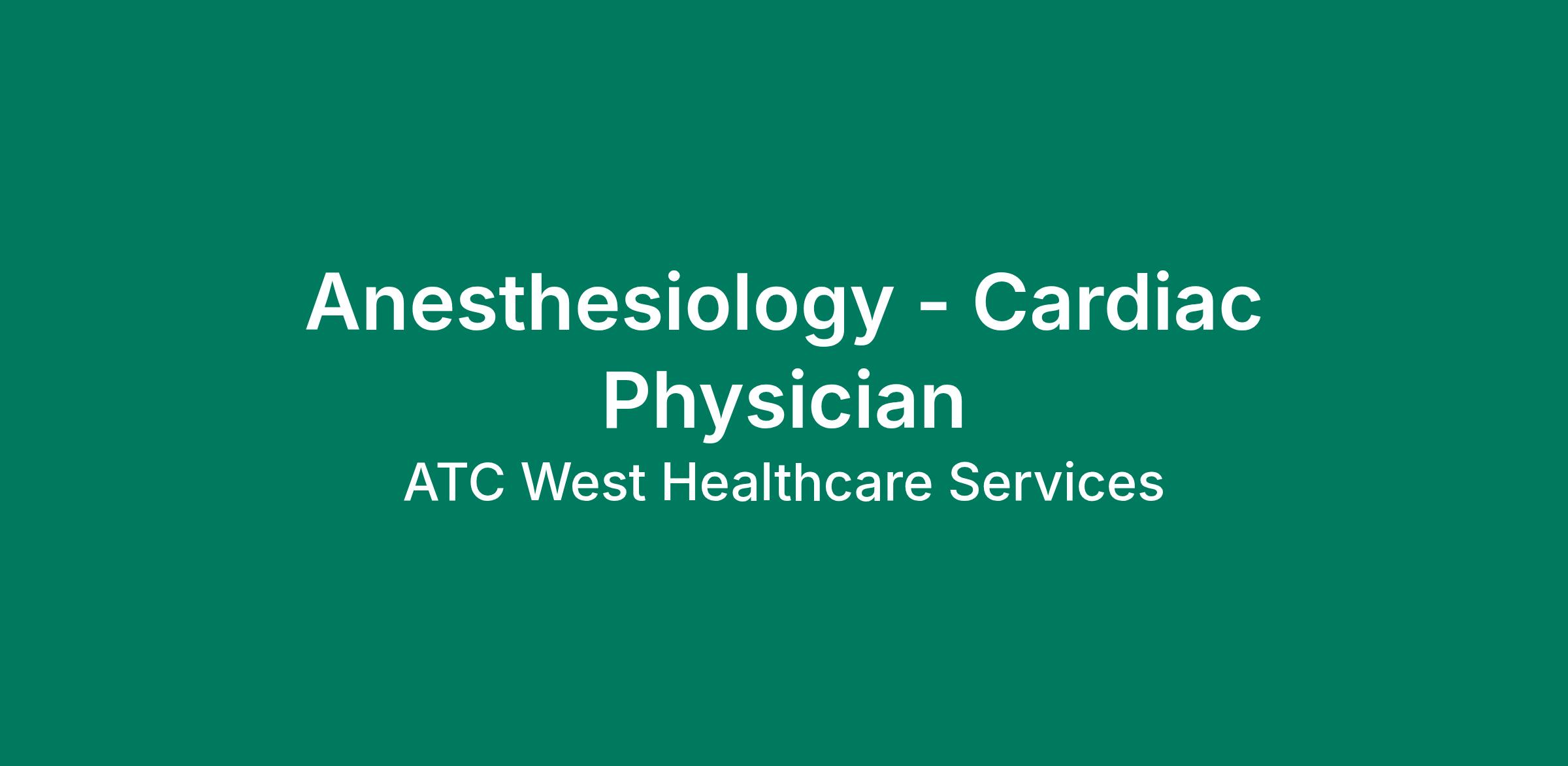 :pointer-events-auto content-visibility:auto supports- content-visibility:auto : contain-intrinsic-size:auto_100lvh scroll-mt- calc(var( header-height)+min(200px,max(70px,20svh " dir="auto" data-turn-id="request-WEB:a3be7373-db49-4937-af3b-f0514a5e3bf7-0" data-testid="conversation-turn-2" data-scroll-anchor="true" data-turn="assistant" tabindex="-1"> ATC West Healthcare Services is seeking a Locum Anesthesiologist to provide hospital-based coverage at its facility in NJ. This role involves a wide range of anesthesiology services, including general, regional, cardiac, thoracic, and complex vascular procedures, as well as supervision of CRNAs. The position offers a potential locum-to-permanent opportunity and requires an active New Jersey medical license. Dates / Schedule Coverage Dates: January 2026 TBDReason for Coverage: Open position; hiring for a permanent providerSchedule: Variable based on surgical and hospital needsIncludes weekday, night call, and weekend call coverage (call schedule TBD)Credentialing timeframe: Estimated days Job Details / Responsibilities Provide anesthesia care for:General surgical (adult) casesIV regional and plexus anesthesiaOpen heart and thoracic (non-open heart) proceduresComplex vascular casesSpinal, regional, and local infiltration anesthesiaManage ventilation and perform invasive line insertions, including:TEE, PA catheter, arterial line, and central line placementSupervise CRNAs during proceduresDocument patient care using Cerner EMRParticipate in call rotations per department schedule Required Skills and Qualifications Board Certification in Anesthesiology RequiredActive New Jersey Medical License Required (no licensing wait)ACLS and BLS Certifications (AHA) RequiredFellowship in Cardiac Anesthesia PreferredProficiency in:Open heart, thoracic (non-open heart), and complex vascular anesthesiaTEE, PA catheter, arterial line, and central line insertionSupervising CRNAsExperience with Cerner EMR PreferredPractice Setting: Hospital-based, Level II Trauma Center