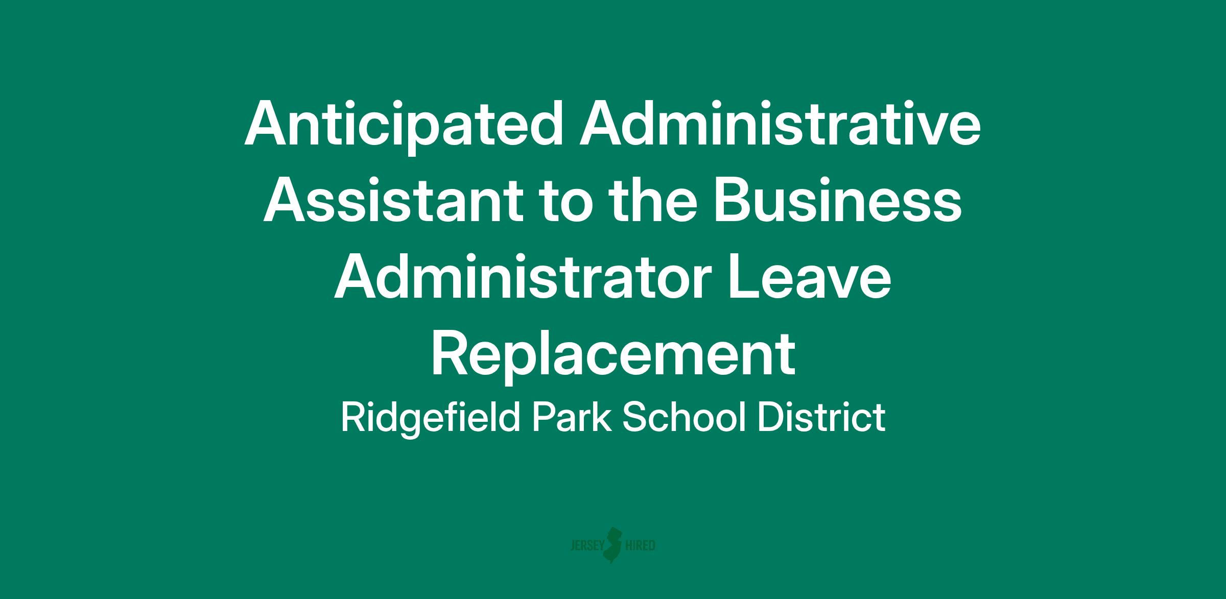 Anticipated: Administrative Assistant to the Business Administrator/Board Secretary Leave Replacement (November 11, 2025 - April 13, 2026)