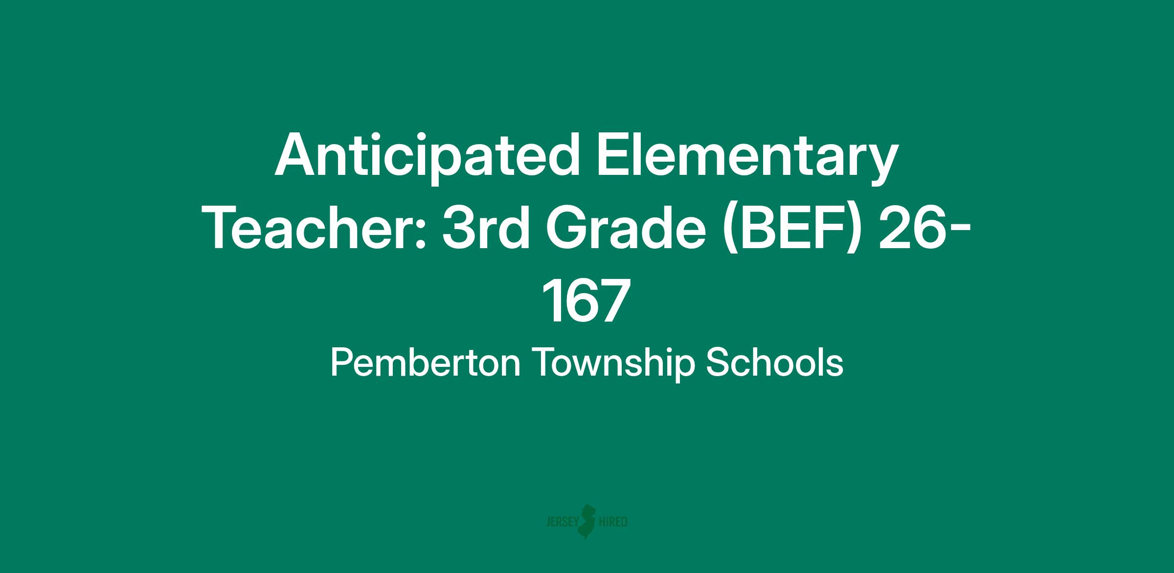 Anticipated Elementary Teacher: 3rd Grade (BEF) 26-167