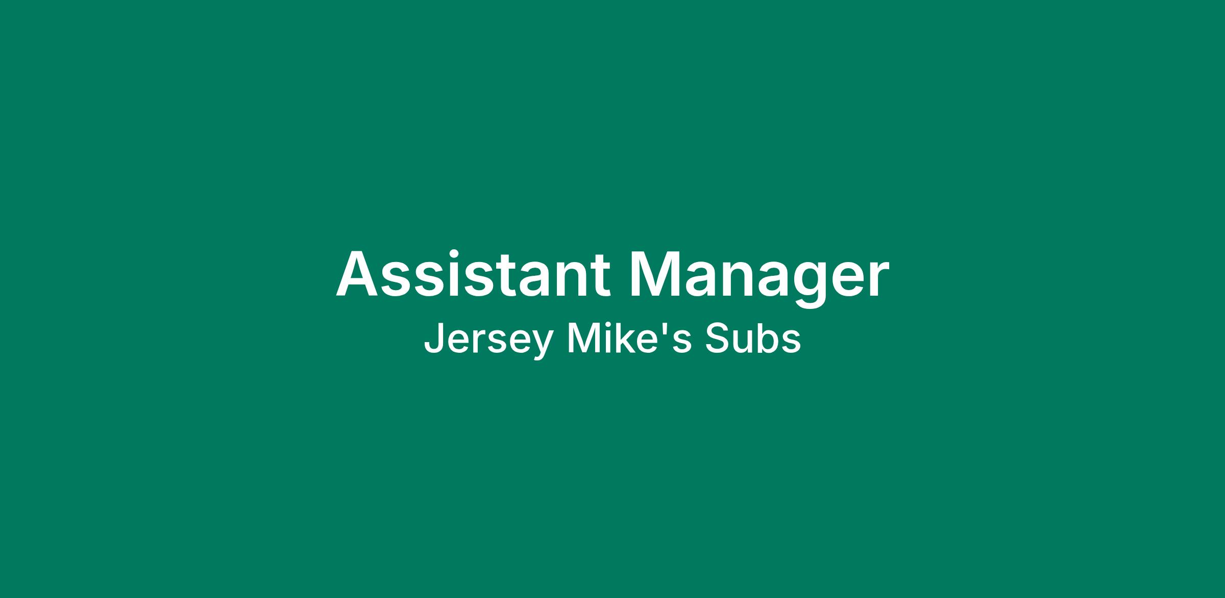 Jersey Mike's Subs is looking for Managers! Become a part of Jersey Mike's vibrant organization! If you like to have fun, banter with people and enjoy sharing your life then working at Jersey Mike’s may be for you. If you enjoy being part of something special, in a strong cultural and spirited environment then bring your energy and come grow with us! This position pays an hourly wage plus tips! An Assistant General Manager responsibilities include: