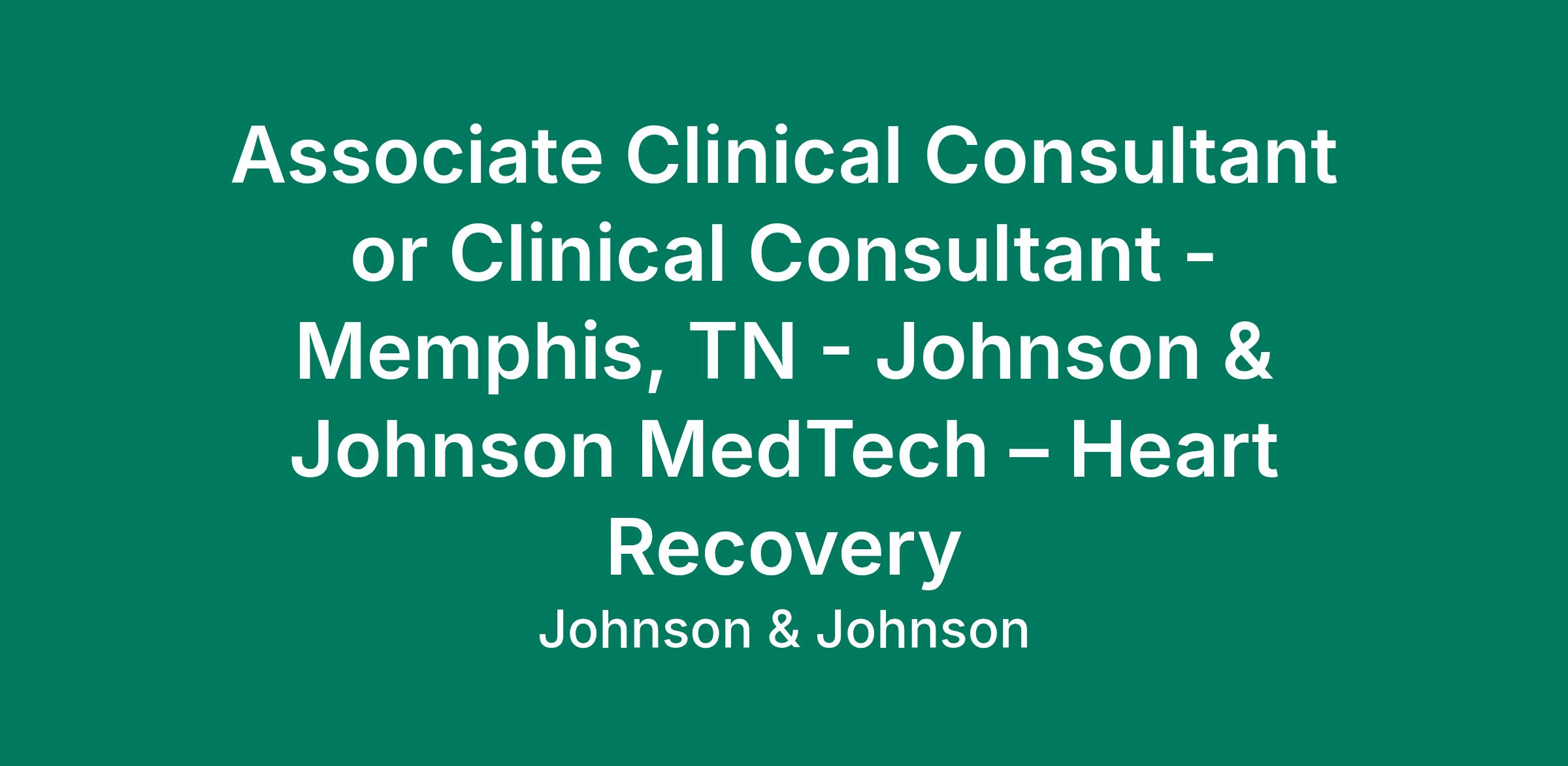 We are searching for the best talent for an Associate Clinical Consultant or Clinical Consultant - Heart Recovery to support clients and patients in the Memphis, TN region.