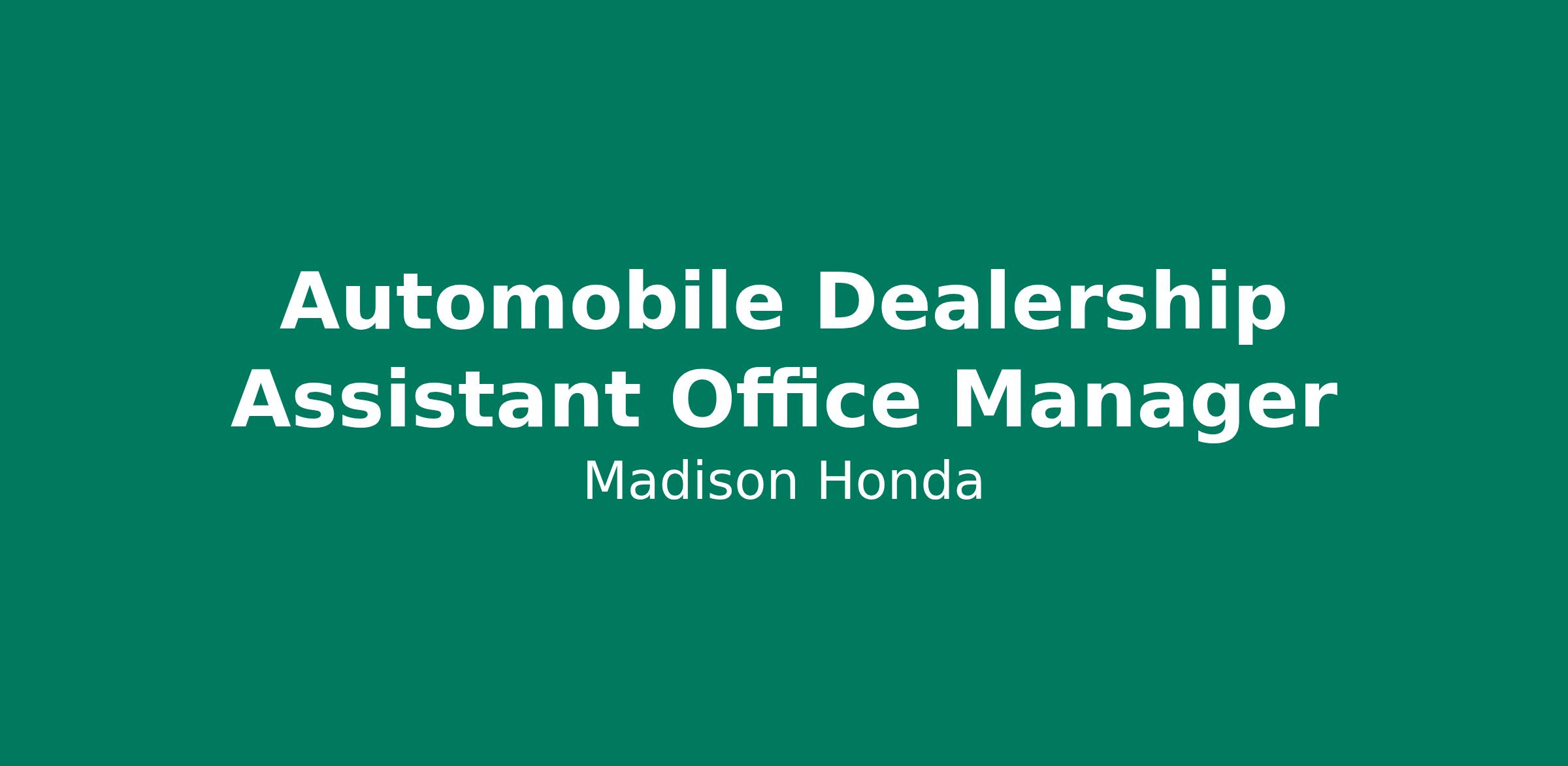 We are seeking an experienced Automobile Dealership Assistant Office Manager with strong accounting and management skills and a background in the automotive industry. This role offers an excellent opportunity for an accounting professional looking to advance their career.