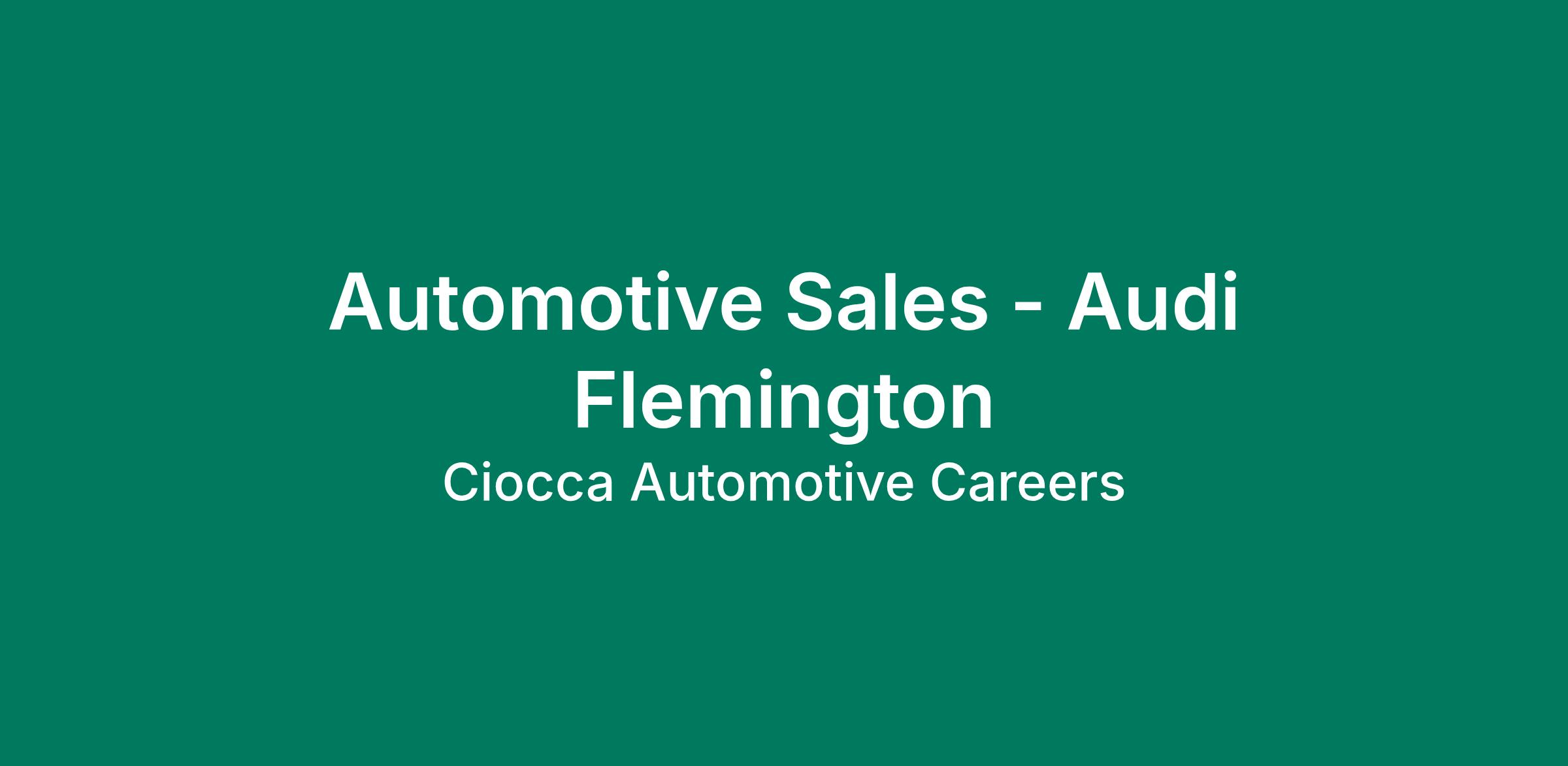 Audi Flemington is an equal opportunity employer. We celebrate diversity and are committed to creating an inclusive, respectful environment for all team members.