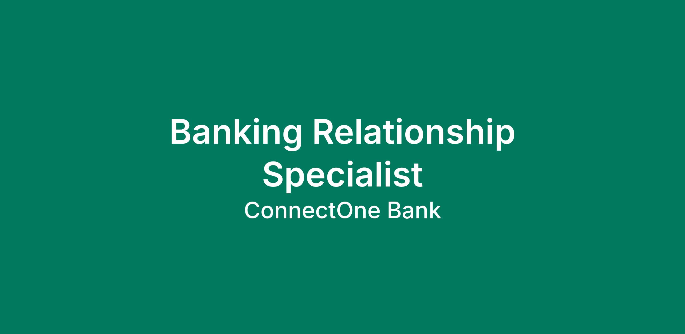 Banking Relationship Specialists play a vital role in ConnectOne “Client First” banking experience by acquiring, retaining, and expanding banking relationships of both the business and consumer clients while demonstrating the ConnectOne Culture.