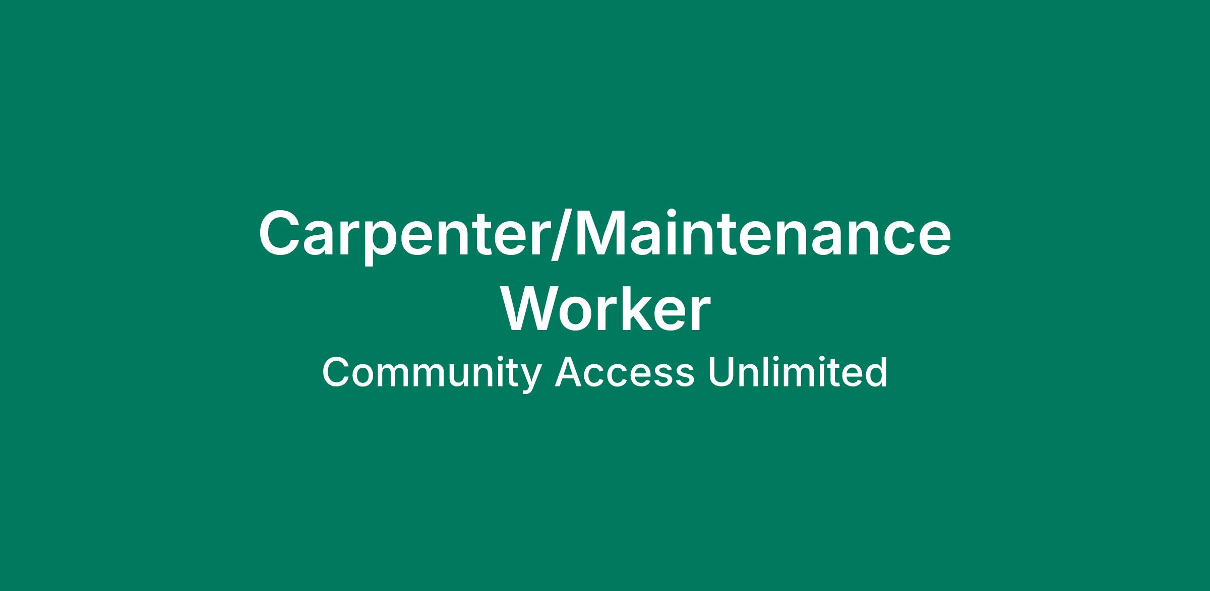 Community Access Unlimited is expanding our facilities department and we're on the lookout for dedicated Full-Time Carpentry/Maintenance Workers to help us maintain safe, functional, and welcoming spaces for our programs across Union County, NJ.
