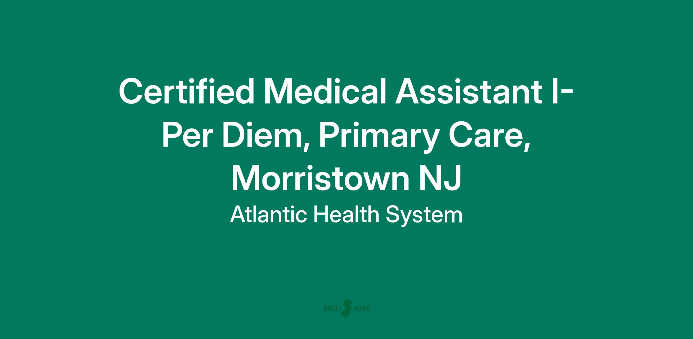 Certified Medical Assistant I- Per Diem, Primary Care, Morristown NJ
