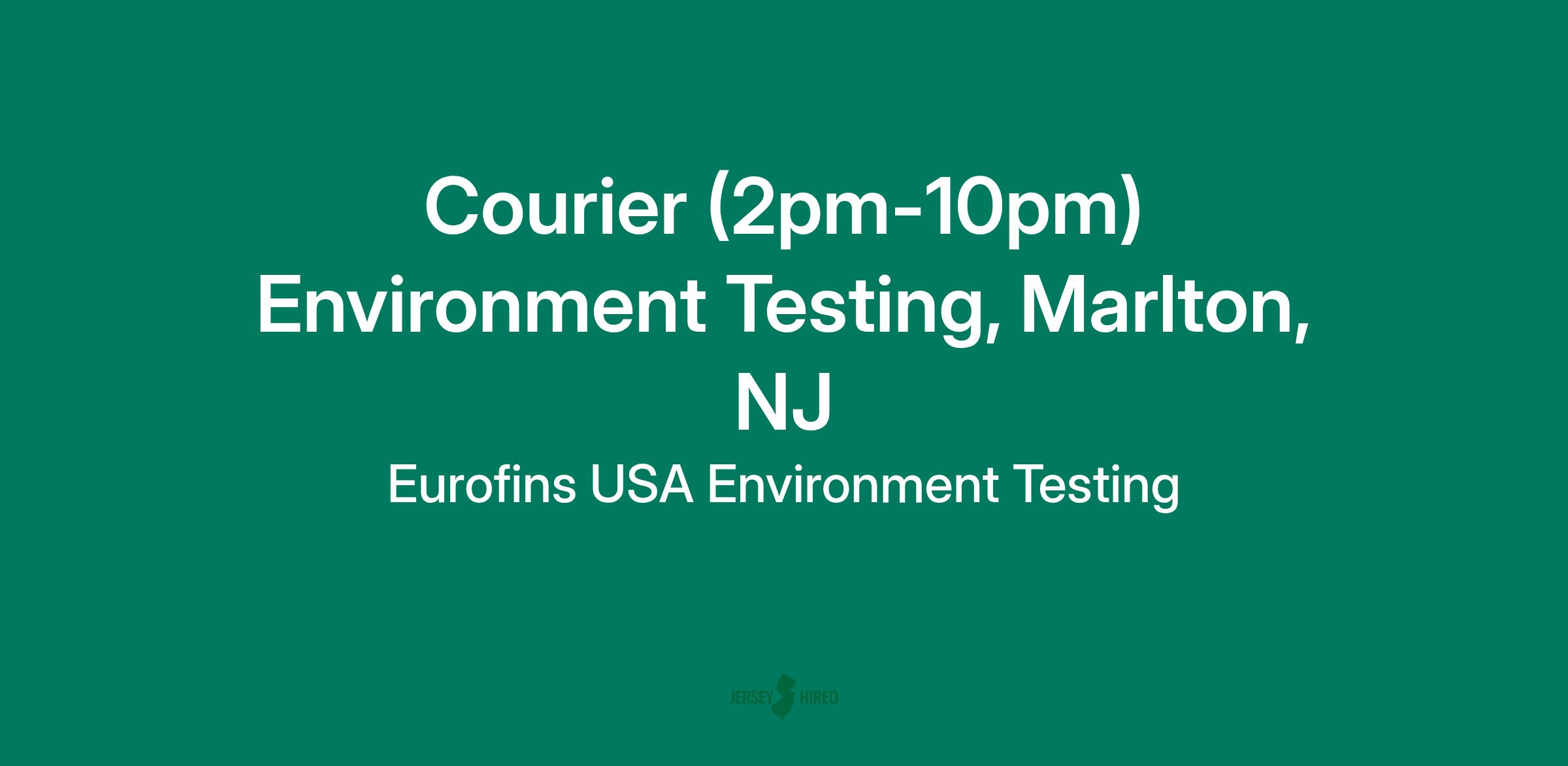 The Courier will work out of the Evesham/Marlton, NJ service center . Compensation (DOE) - $17.50/hour +5% shift differential. Full Benefits. Schedule is Monday - Friday 2pm-10pm