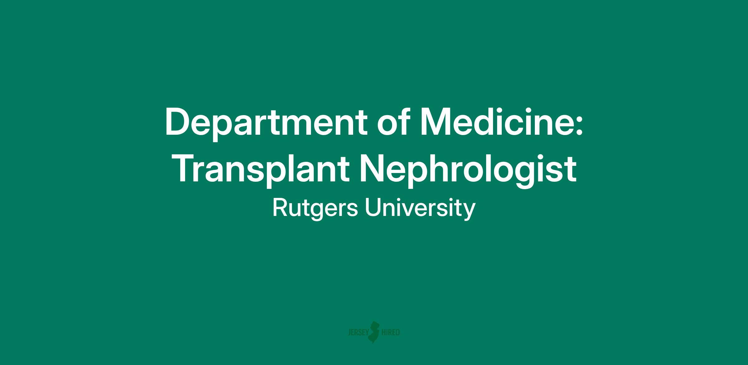 The Division of Nephrology, Rutgers Robert Wood Johnson Medical School seeks to employ an open rank Transplant Nephrologist. This position offers the opportunity for the potential faculty member to join a team of nephrologists providing clinical services at Robert Wood Johnson University Hospital ( RWJUH ) and at the academic practices of the medical school. As an Transplant Nephrologist, there will be a focus on: direct care of renal and pancreas transplant candidates, recipients, and living donors ( includes pre-transplant evaluation of candidates/living donors, inpatient care of transplant recipients/ living donors, and posttransplant management of recipients/living donors in the outpatient clinic.), assist the on-call general nephrologist for transplant related issues, daily transplant teaching rounds of fellows/house staff, including didactic lectures as well as interdisciplinary rounds, while on the inpatient transplant service, review charts, laboratory studies, radiology and diagnostic studies for transplant candidates and for transplant recipients and other related duties. Robert Wood Johnson University Hospital at New Brunswick is part of the RWJBarnabas Health System. The affiliation of Rutgers Health and RWJ /Barnabas Health, the largest health system in NJ, presents exciting opportunities for growth and expansion of the nephrology program. The integrated health system (RWJBarnabas) is a $5 billion enterprise and cares for about 40% of all NJ residents.