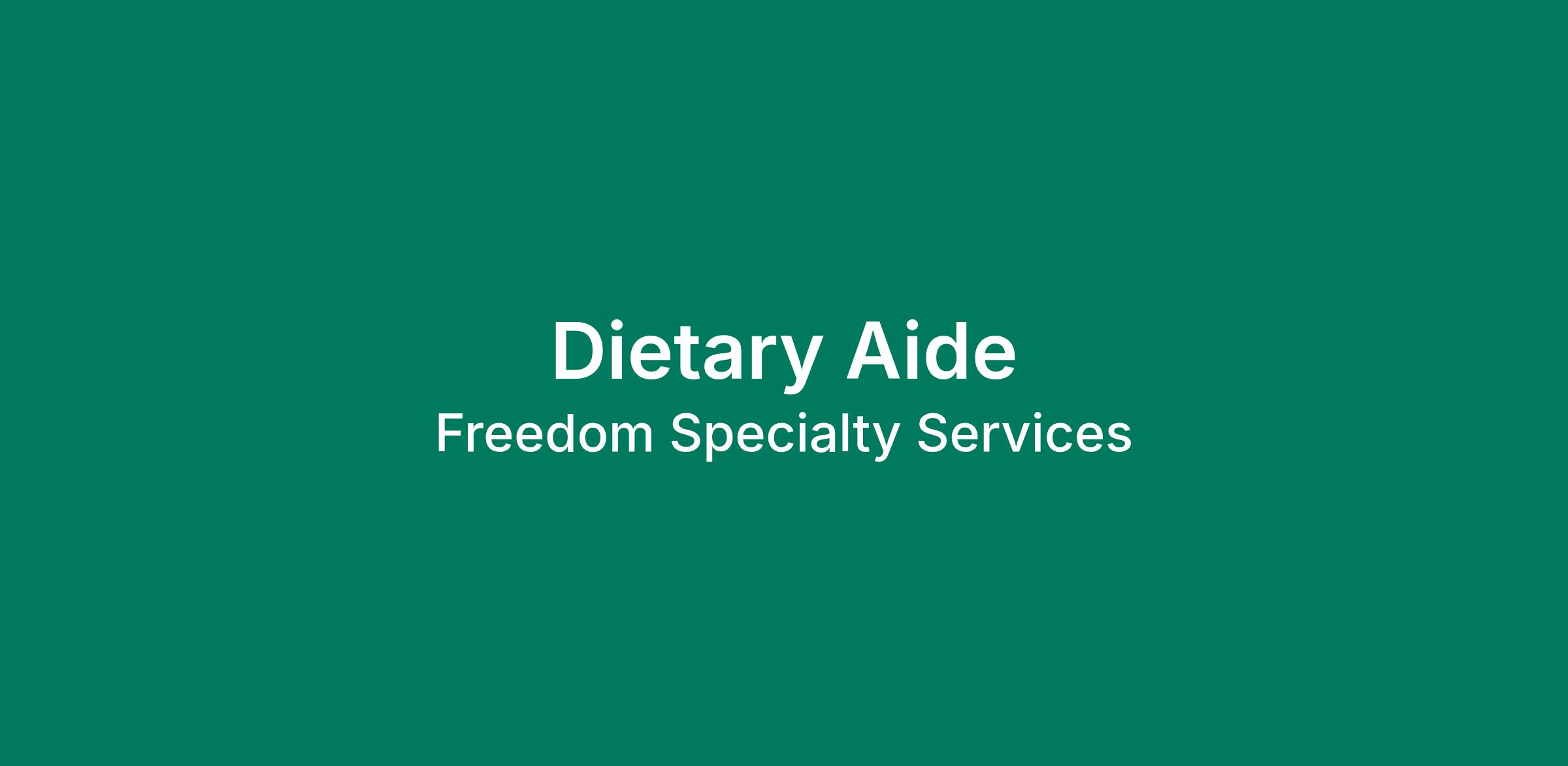 As a Dietary Aide, your duties could include preparing and cooking food dishes, delivering food to particular patients and assisting the kitchen staff in maintaining a clean, sanitary workplace. Experience is preferred but not required for this position. We will train the right person to excel in this healthcare environment. Duties for this position include:
