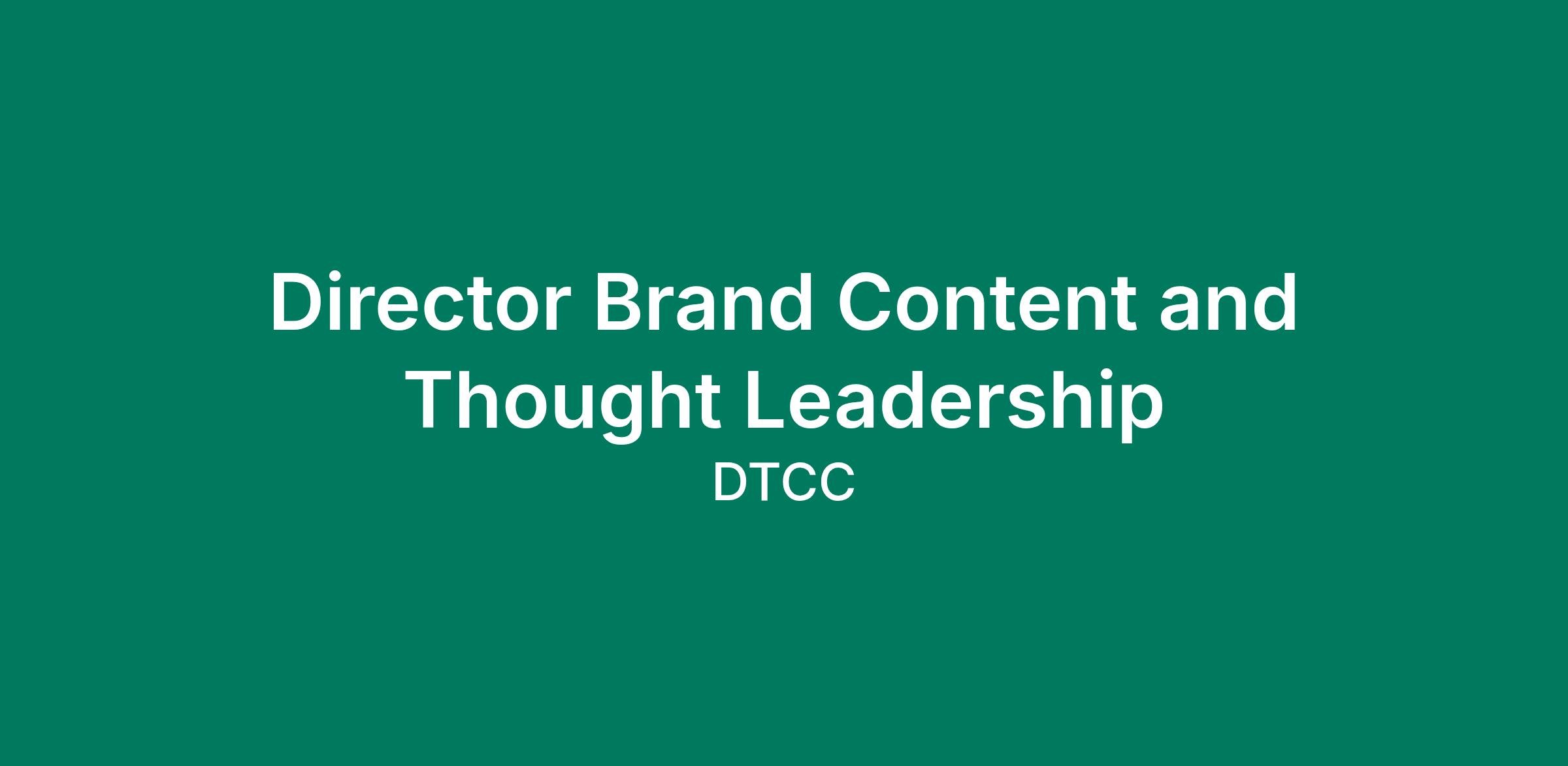 DTCC is seeking a Thought Leadership and Brand Content Lead to shape the next evolution of how we show up in the world. This role will define and activate the strategic vision for branded content and executive thought leadership—building brand awareness, familiarity, and differentiation through powerful ideas, storytelling, and execution.