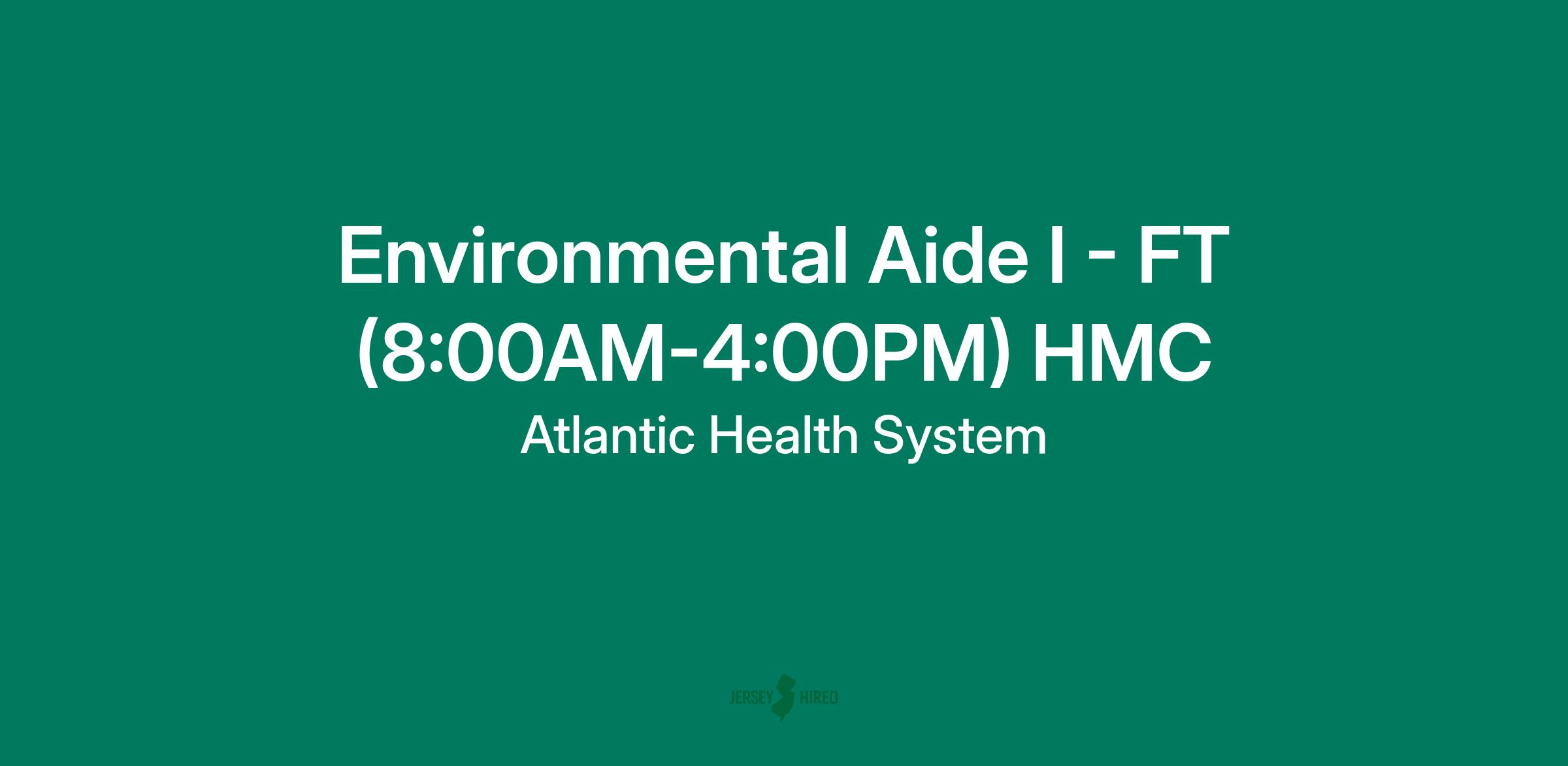 Atlantic Health System is seeking a Full-Time Environmental Aide I (Housekeeping) at Hackettstown Medical Center. Required hours are 8:00AM-4:00PM including rotating weekends. Starting rate $18.50/hr.