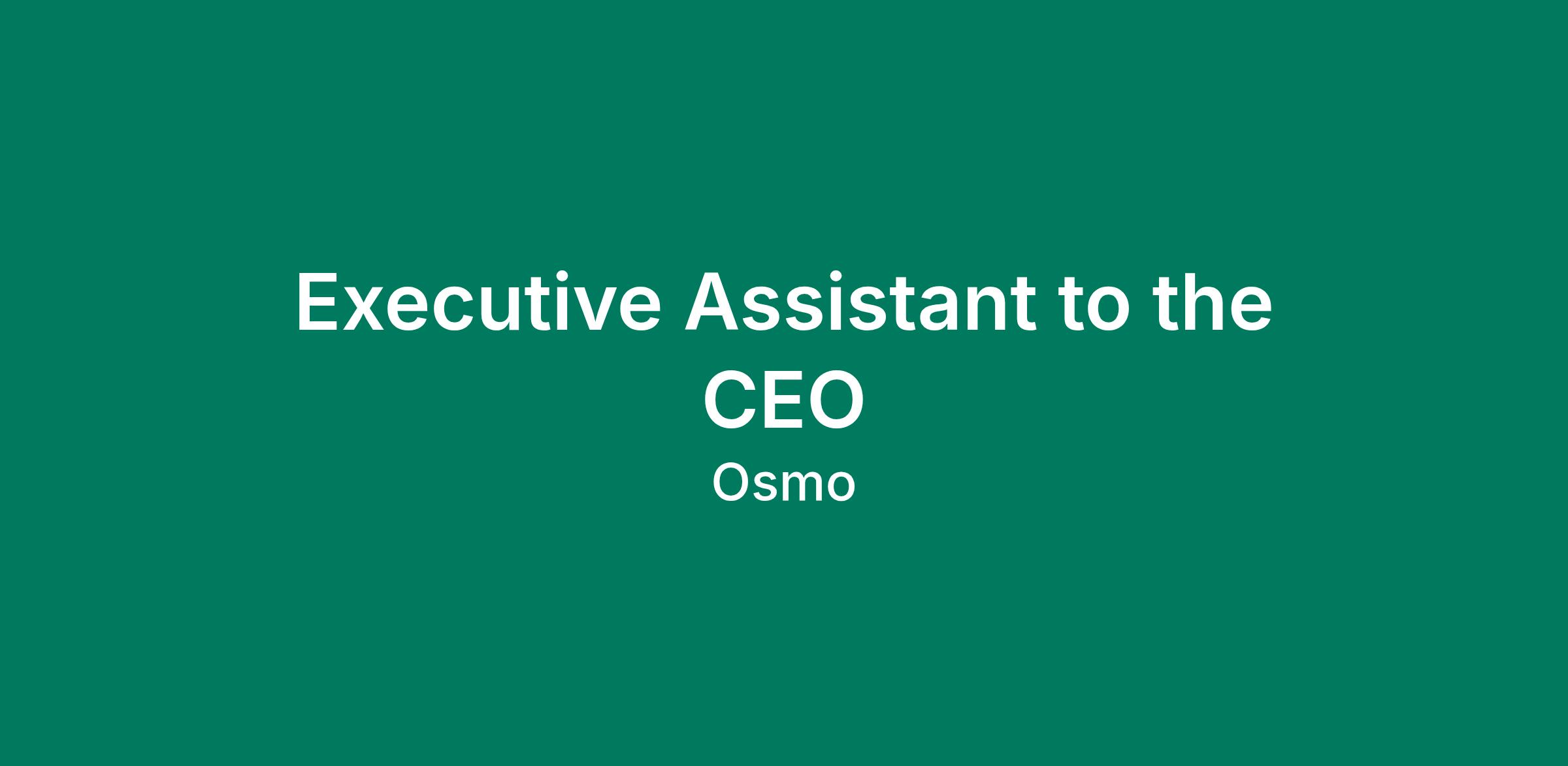 Osmo is seeking a sharp, proactive Executive Assistant to partner directly with our CEO. This is a high-trust, high-impact role — you'll be the person who keeps the CEO focused, organized, and operating at their best. You'll sit on the People team, be in-office daily, and be embedded in the rhythm of the business. This role is first and foremost about calendar, travel, and email. Everything else is in service of protecting the CEO's time and ensuring they can do their best work.