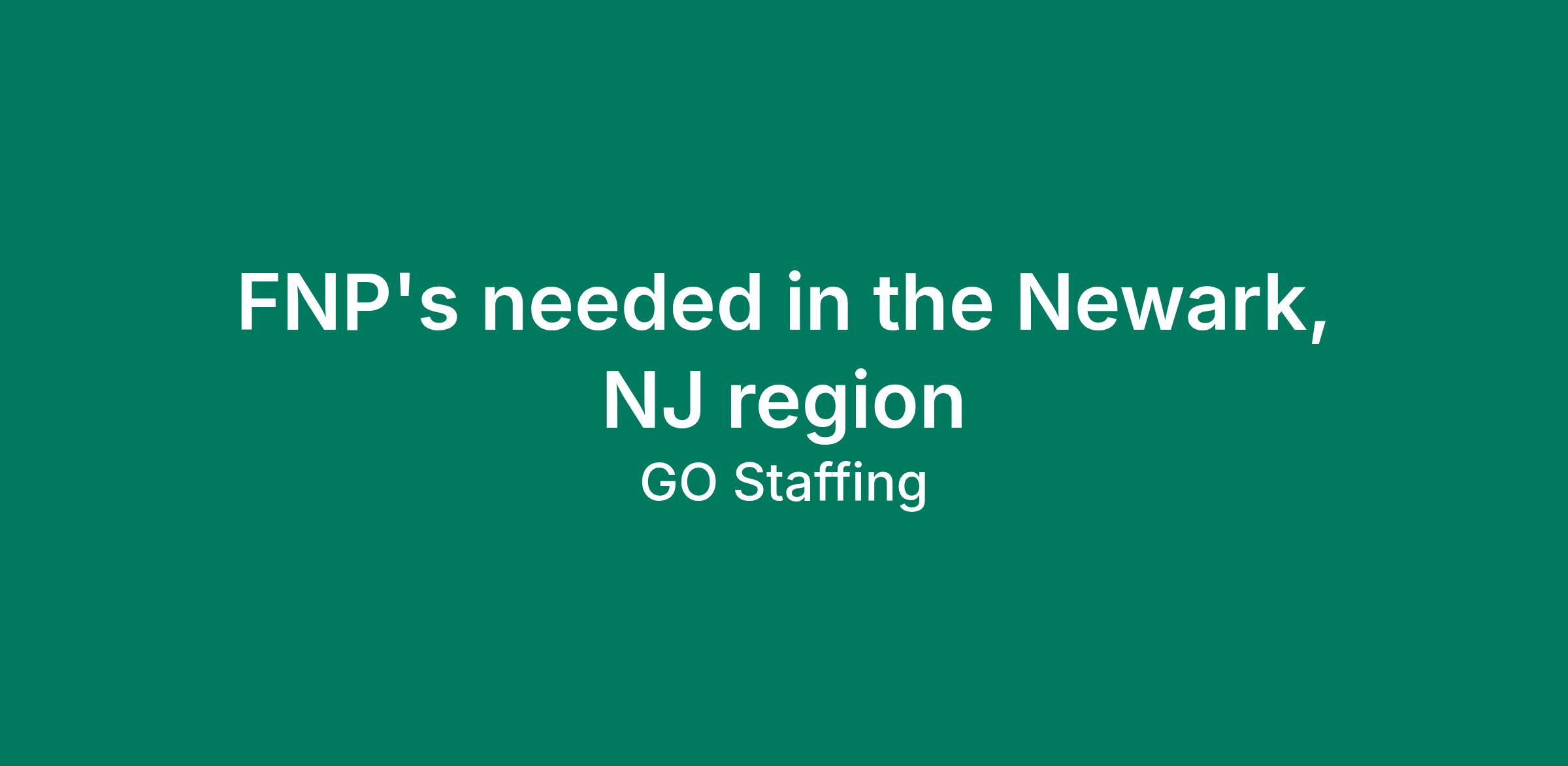 Seeking FNP's to join FQHC in Newark, NJ region.Full-time permanent position.Mon-Fri work week seeing all ages.May be asked to do some GYN procedures such as Annual Pap Smears and std screening. Experience with these are a plus!Seeking providers with at least 1 year of experience as a Nurse Practitioner.Spanish speaking preferred, but not required.Competitive Salary with Full Benefits that include Health and Dental, PTO and Paid Holidays, CME, and more.Refer to Job