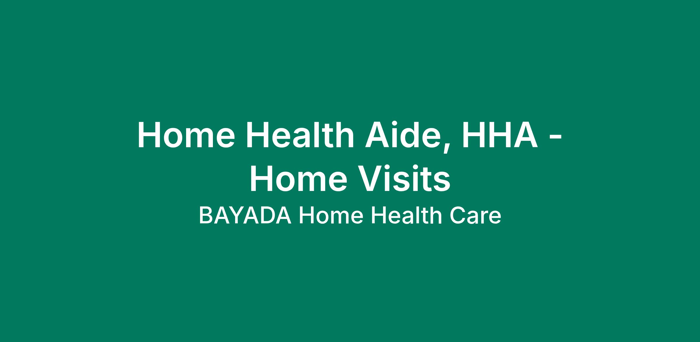 BAYADA Home Health Care is currently seeking an experienced Certified Home Health Aide, HHA for an opportunity completing home care visits to clients located throughout Hudson County. Please note this is a visiting aide position, so day time availability during the week is required.
