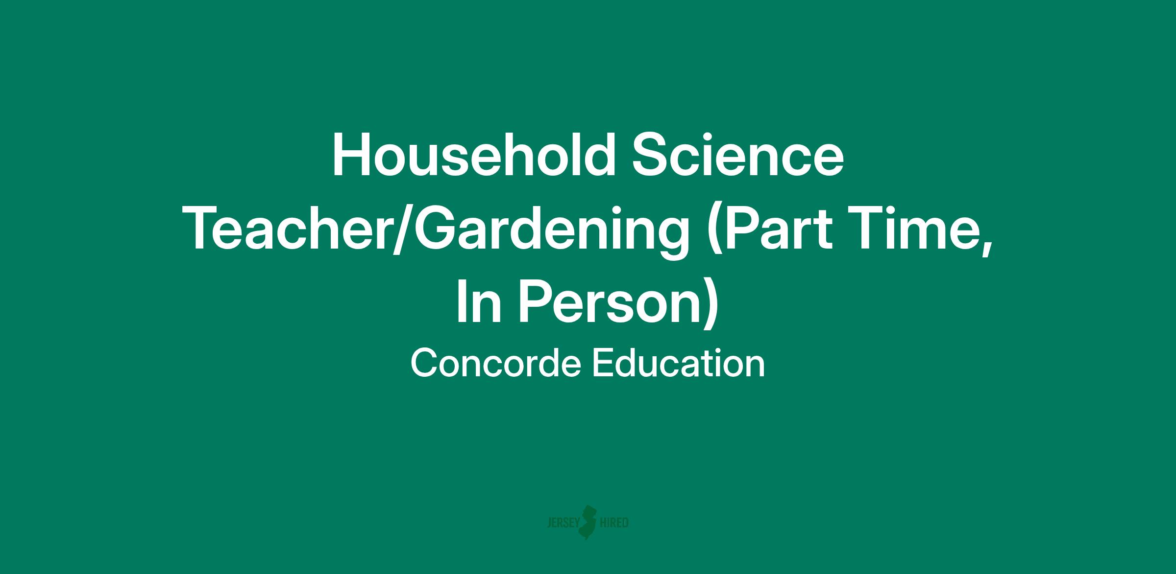 Job Title: Household Science Teacher (Part Time)