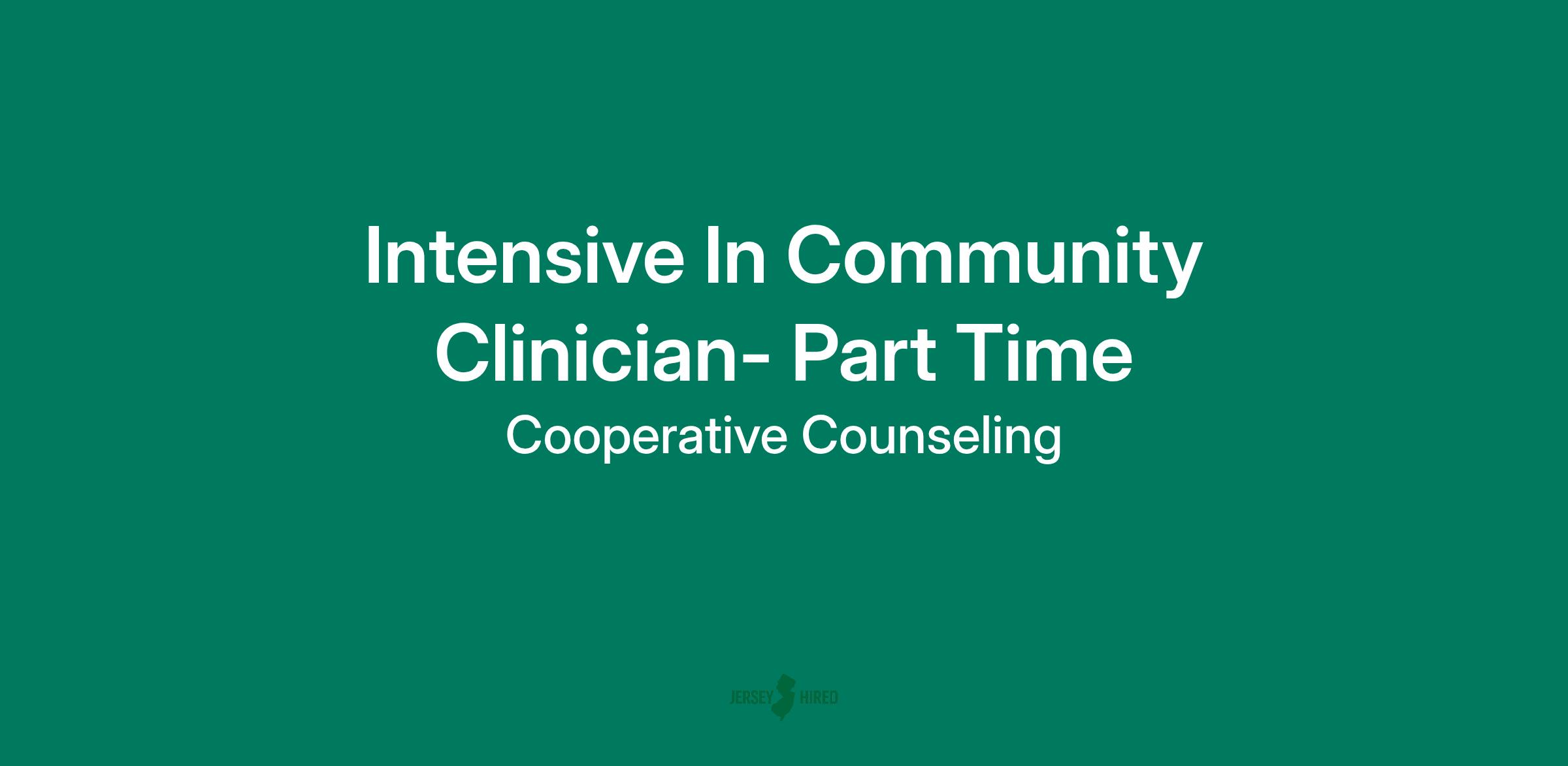 CCS is currently seeking experienced, outgoing and motivated Licensed Clinicians to work within our Intensive In-Community (IIC) Program. Employee and Independent Contractor positions are available to provide short term, evidence-based behavioral health services to youth and families in their homes. We have opportunities to serve families in the following New Jersey counties: Ocean, Burlington, Camden, Passaic, Bergen, Hudson, Somerset, Hunterdon, Warren, Mercer, Monmouth, Morris, Sussex, Union, Essex, and Middlesex.