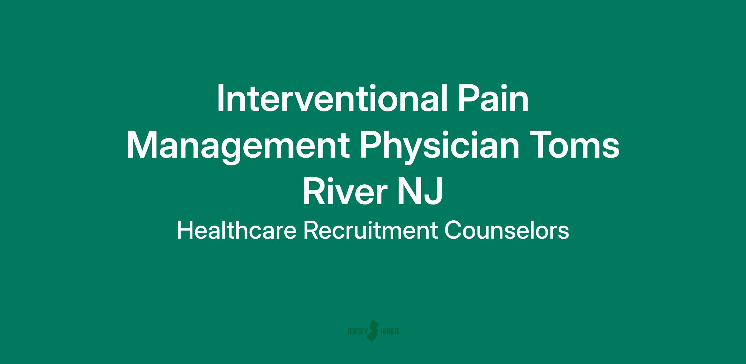 Interventional Pain Management Physician Toms River NJ $415k-$460k to start with potential up to $575k