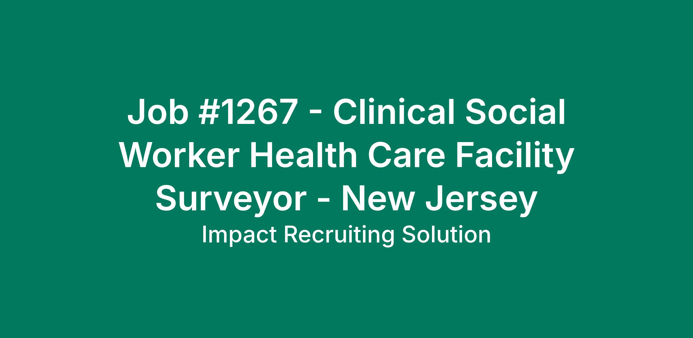 JOB TITLE (#1267): Clinical Social Worker Health Care Facility Surveyor - New Jersey