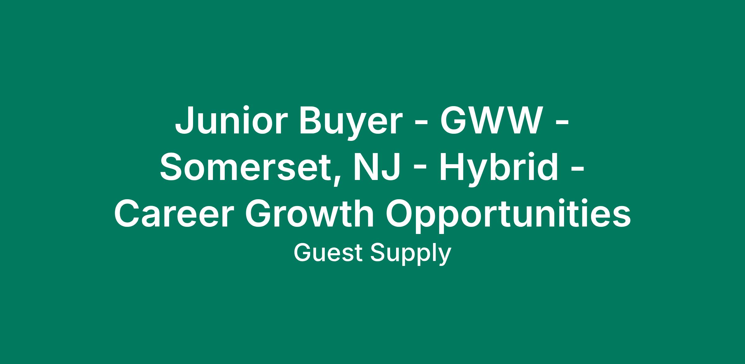 Junior Buyer - GWW -Somerset, NJ - Hybrid - Career Growth Opportunities
