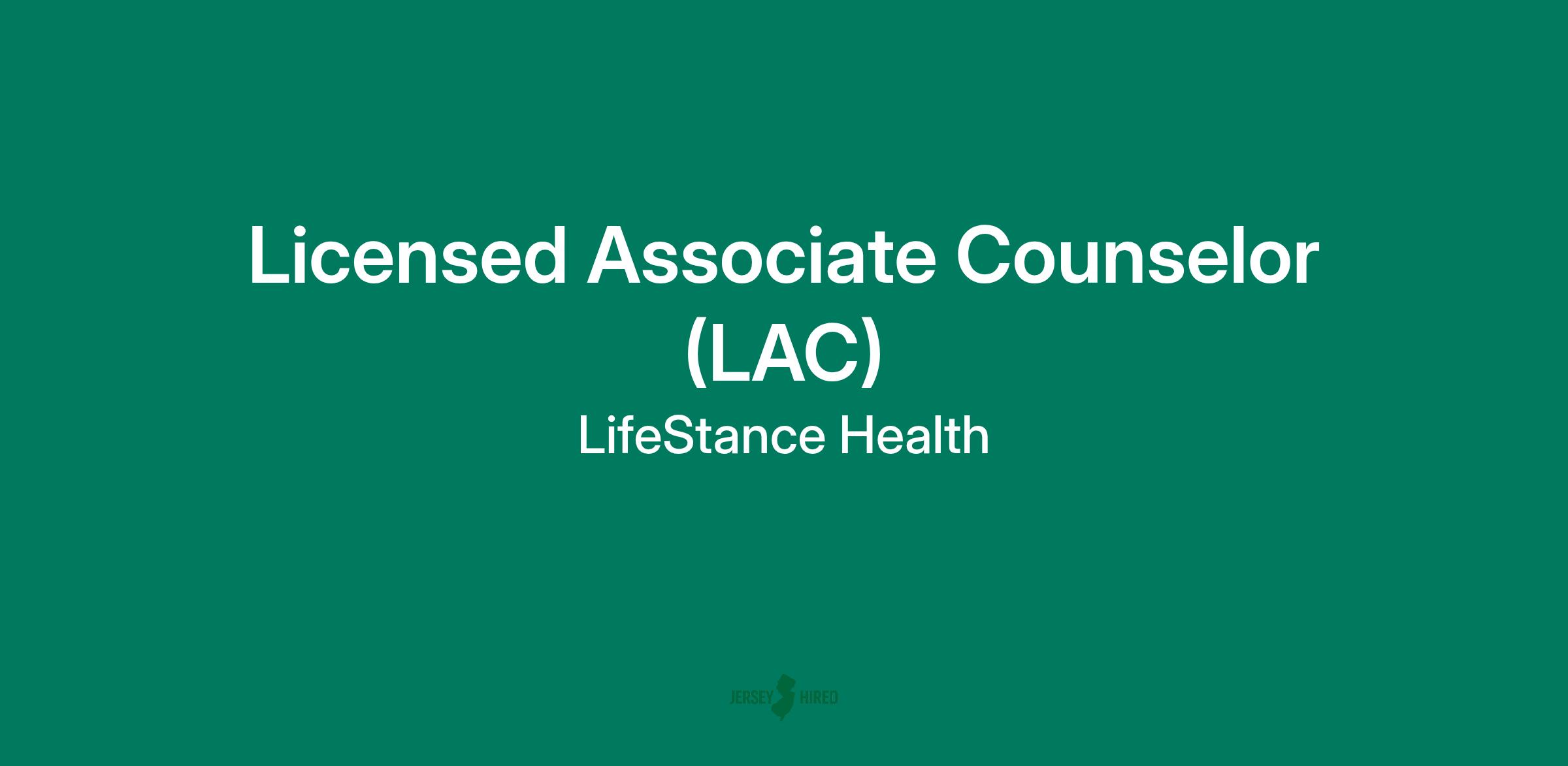 Active NJ license as a Licensed Associate Counselor (LAC).