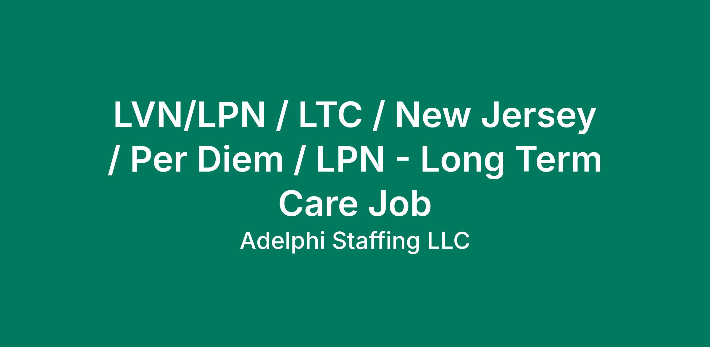 Ref #: SM-U-1211Specialty: LPN - Long Term CareJob Type: Contract/ Per DiemLocation: Cherry Hill, NJShift Type: Day, Evening, Night (8, 10, or 12 hours)Rate: $34.4 - 36.6/hr Requirements: