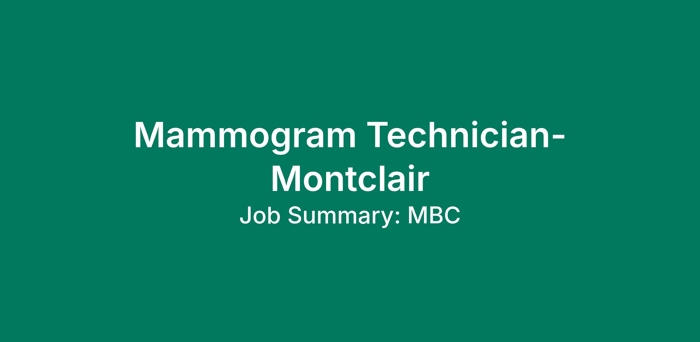 MBC is seeking a per diem, part time, or full time Mammogram Technician.