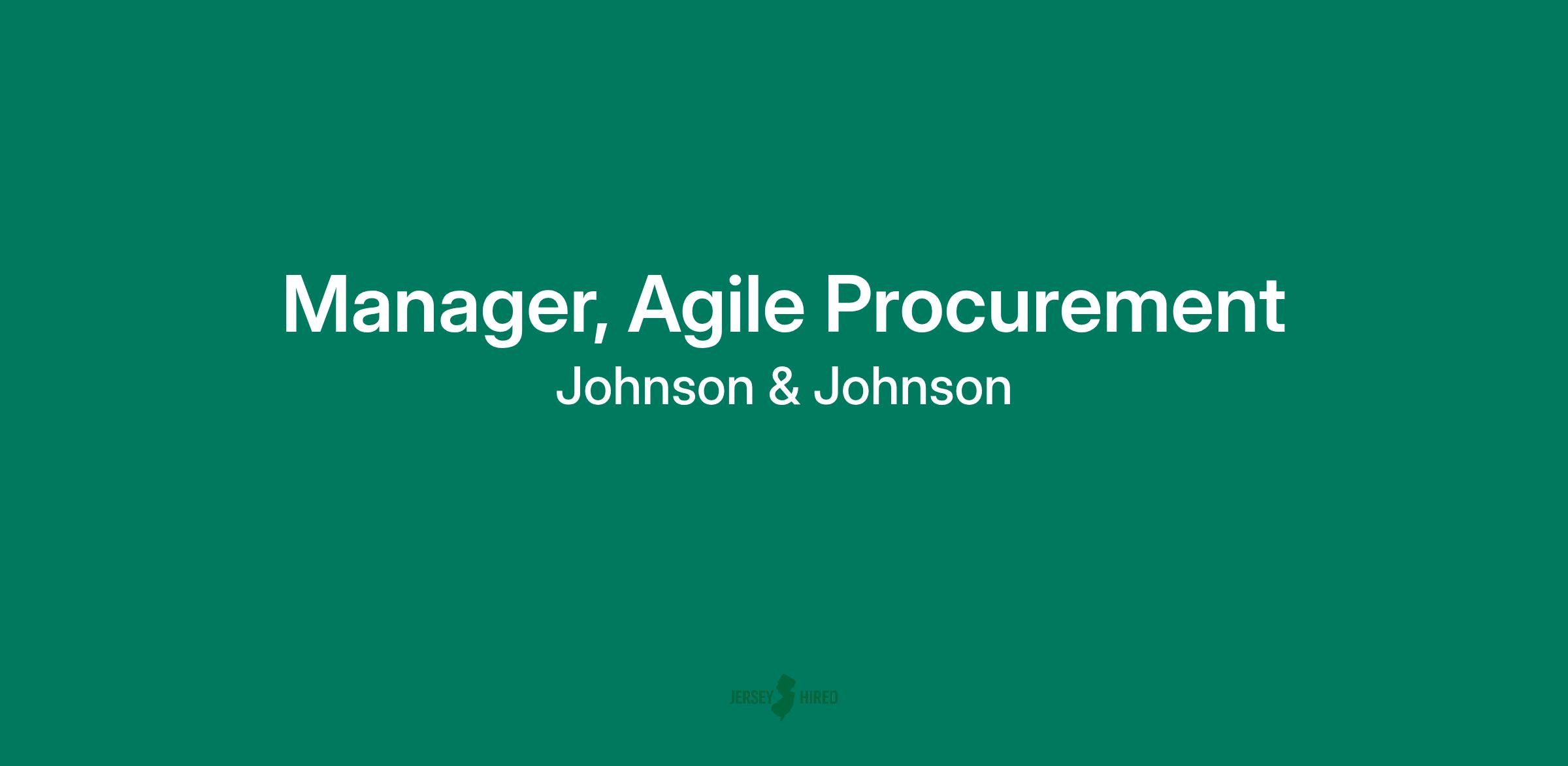 Johnson & Johnson Family of Companies is recruiting for a Manager, Agile Procurement, for our Innovative Medicine Research & Development Procurement team! The location is United States (Titusville PA, Spring House PA, Raritan NJ) or Beerse, Belgium.