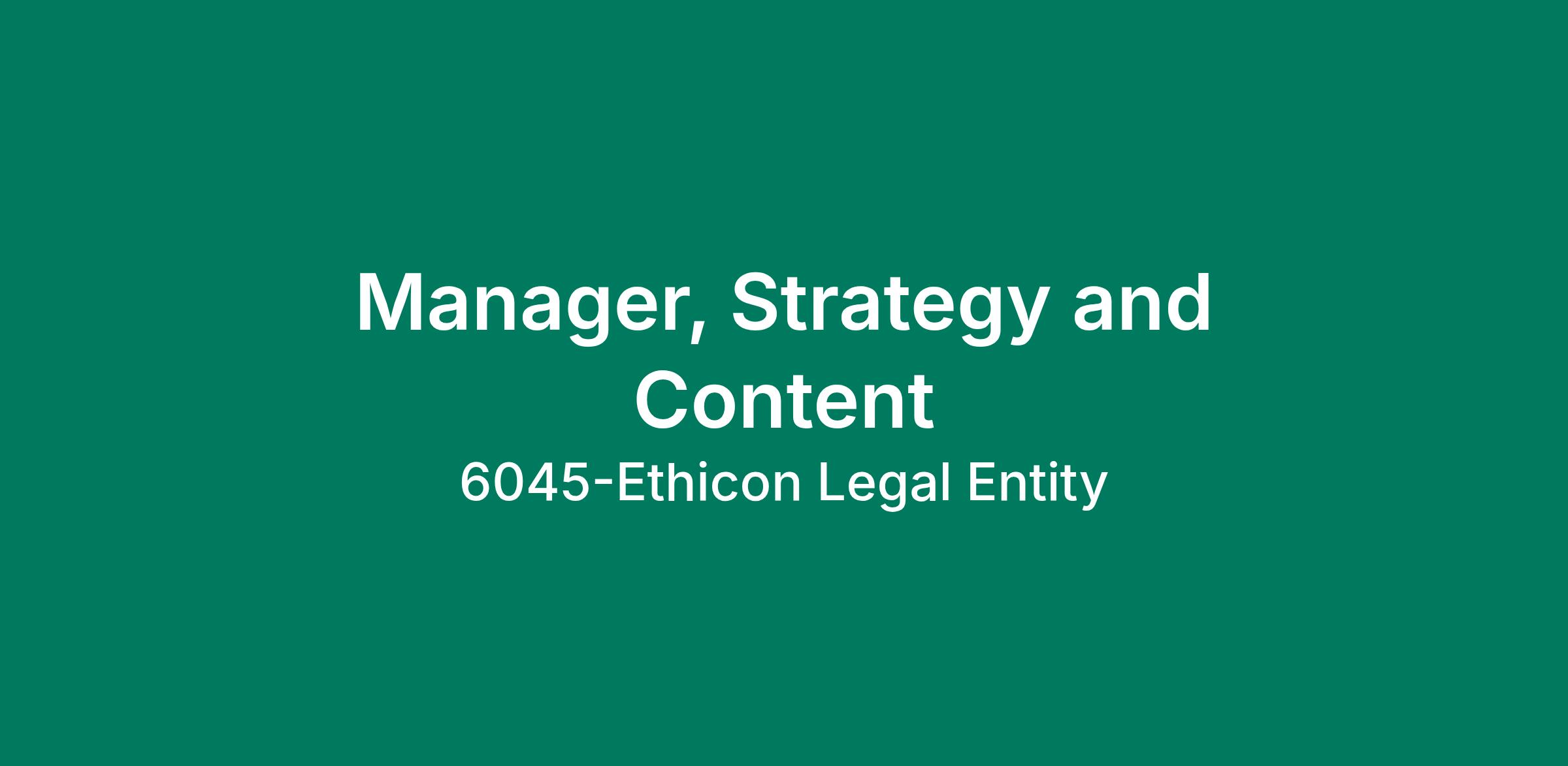 Johnson & Johnson is recruiting for a Manager, Strategy and Content to join our MedTech Surgery business located at our Raritan, NJ or Cincinnati, OH site.