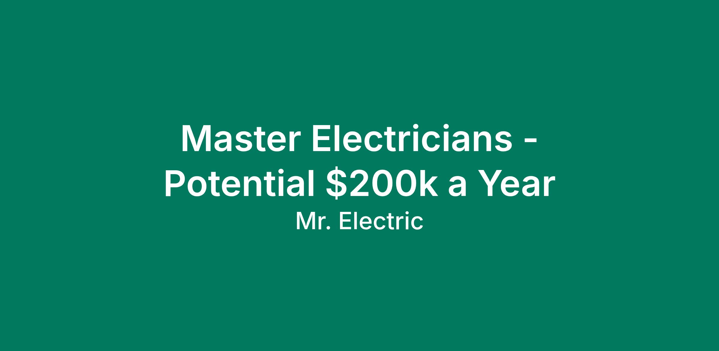 Master Electricians - Potential $200k a Year