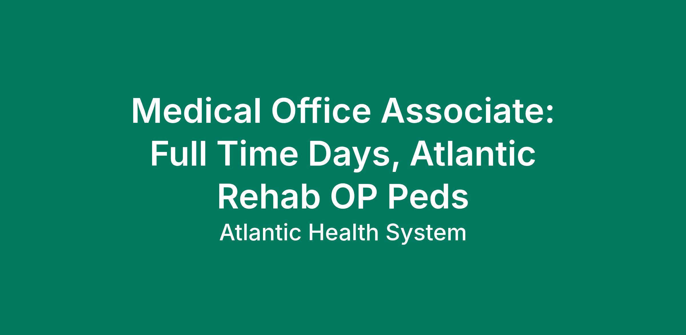 Atlantic Health System is seeking a well-qualified candidate to join their outpatient pediatric rehabilitation team in Morristown as a full-time Medical Office Associate. Daily responsibilities would include but not limited to the following: