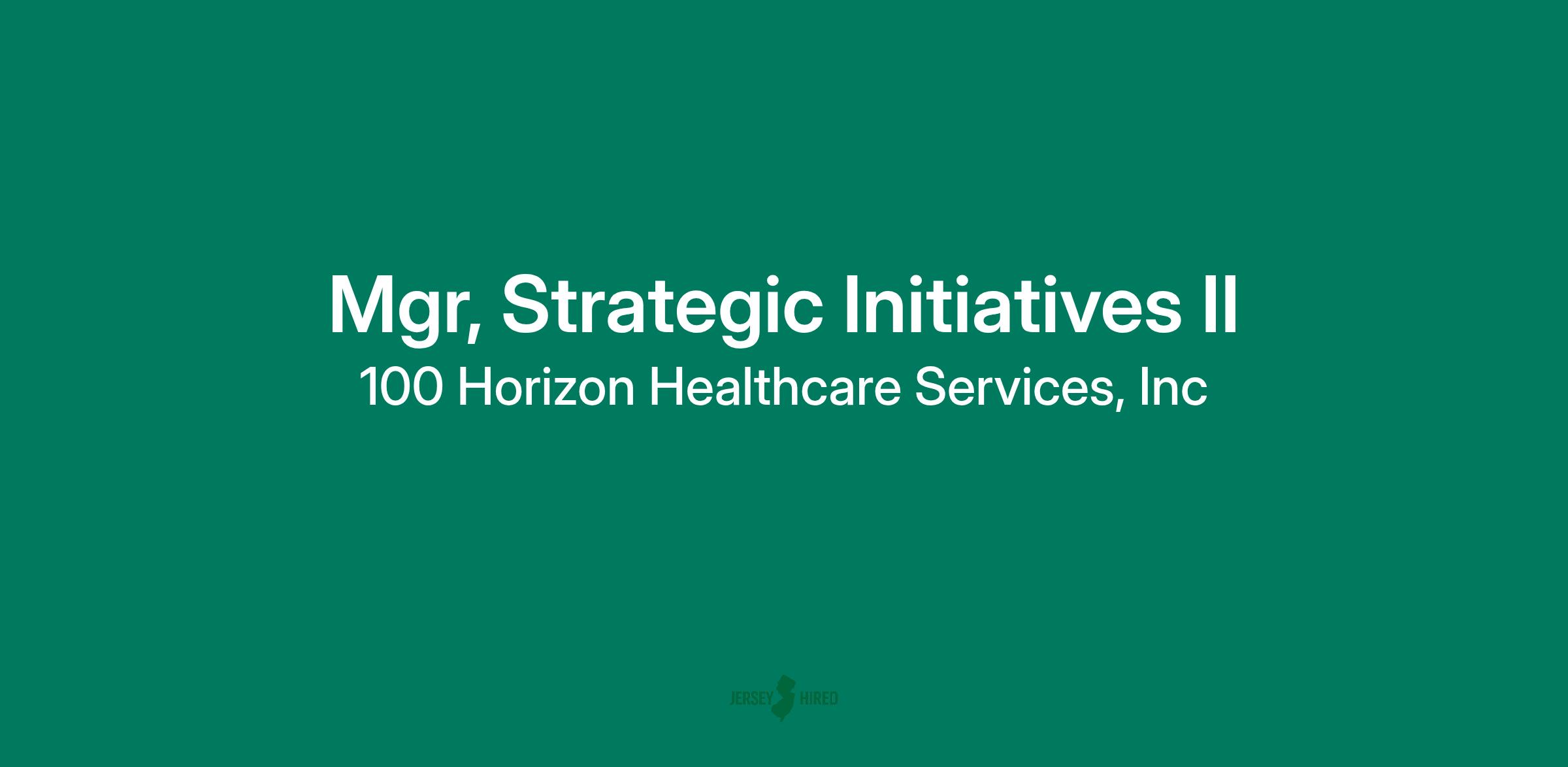 The Manager Strategic Initiatives II is responsible for leading strategy consulting projects in support of the Horizon BCBSNJ leadership team. The incumbent will provide thought leadership, design work plans and drive projects in support of key strategic initiatives.