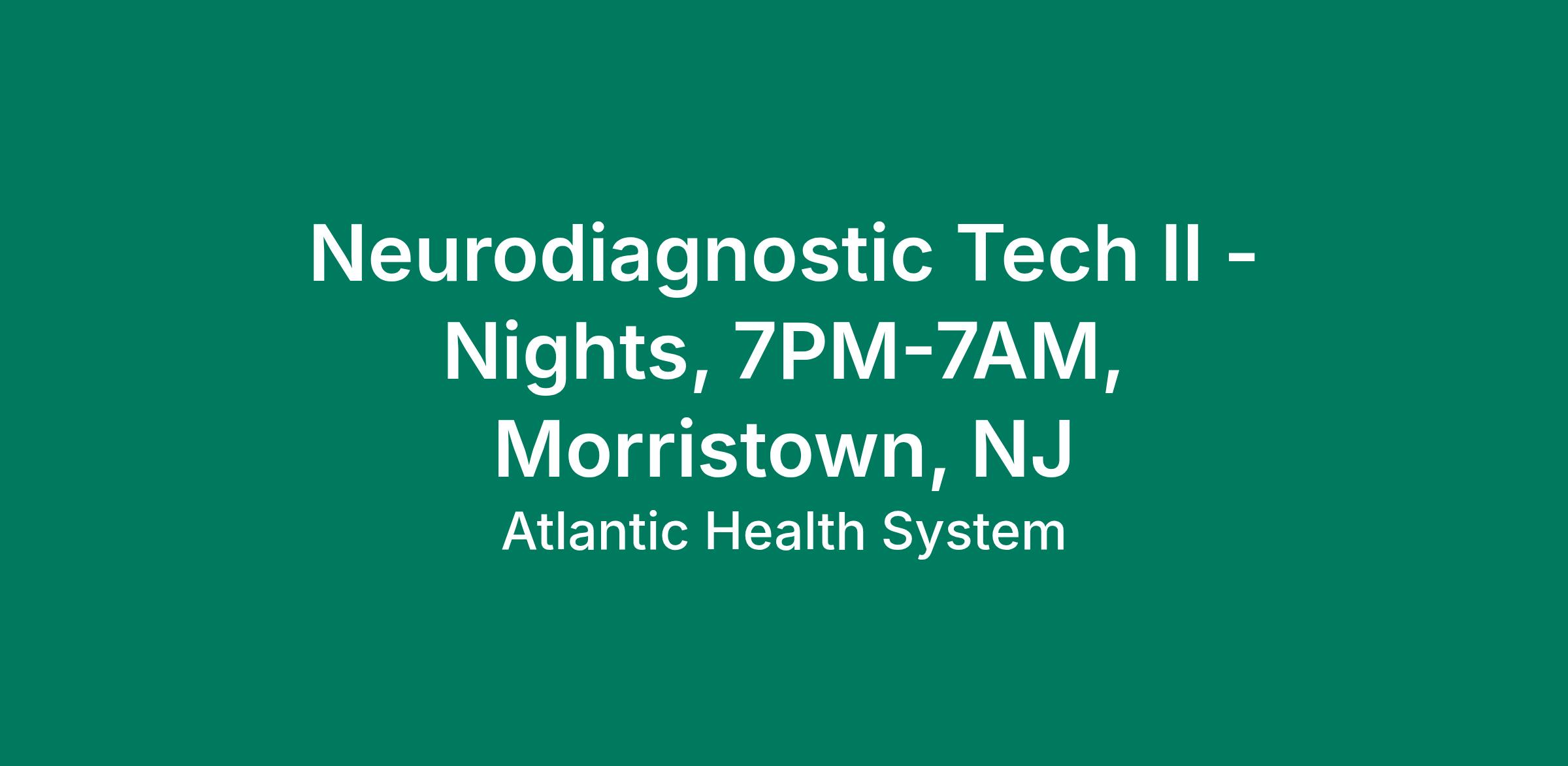 Neurodiagnostic Tech II - Nights, 7PM-7AM, Morristown, NJ