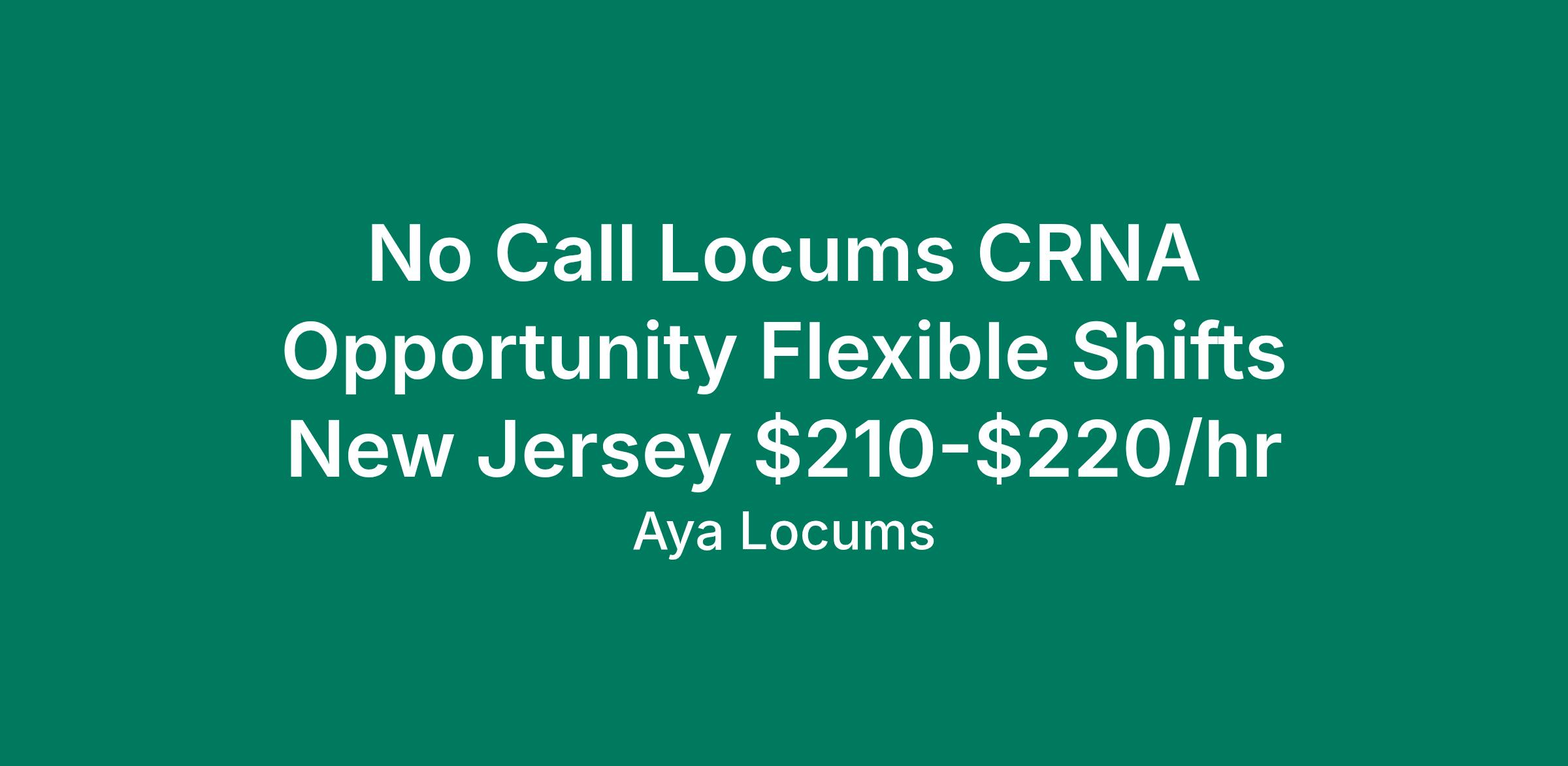 No Call Locums CRNA Opportunity Flexible Shifts New Jersey $210-$220/hr