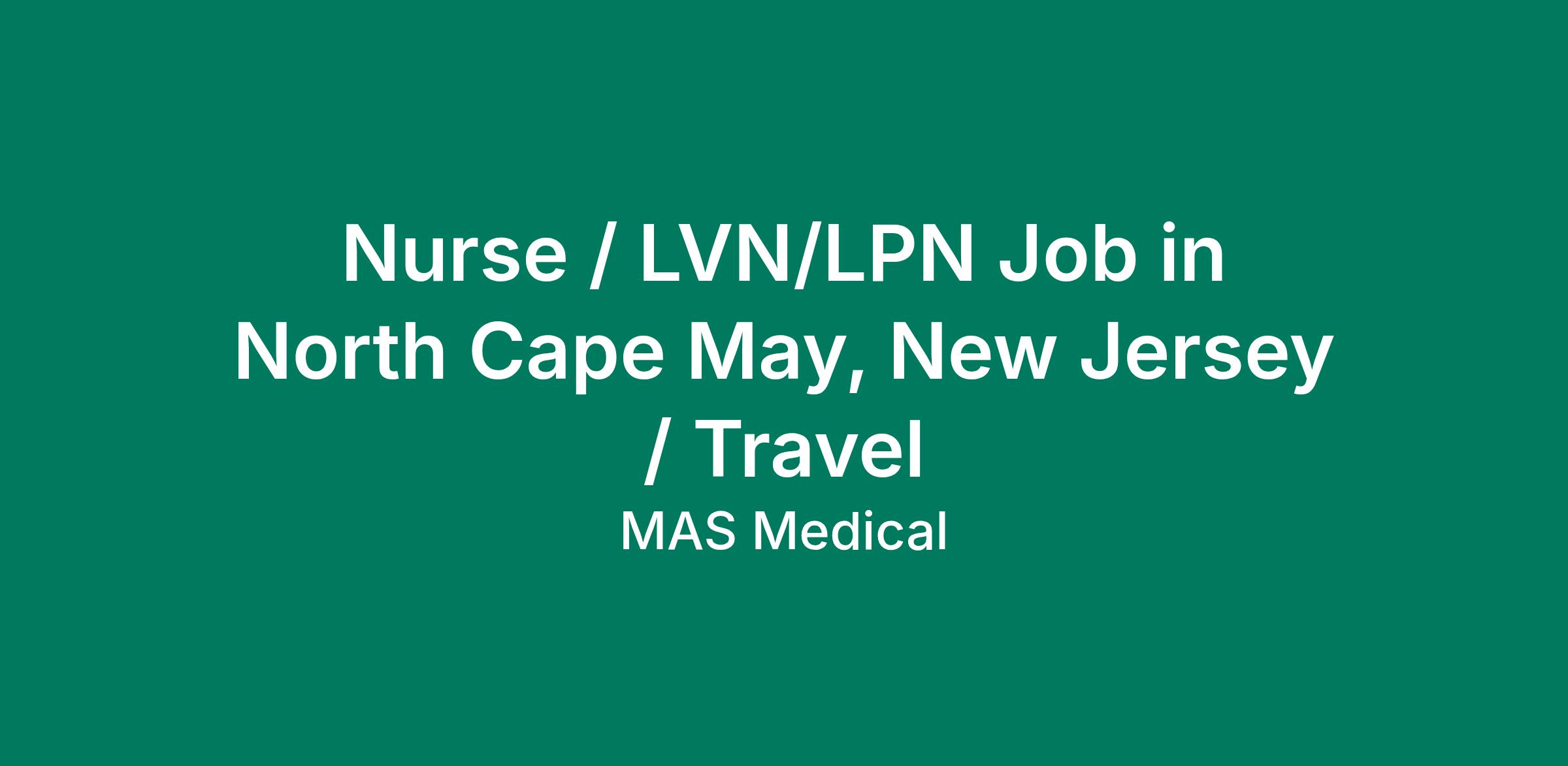Nurse / LVN/LPN Job in North Cape May, New Jersey / Travel