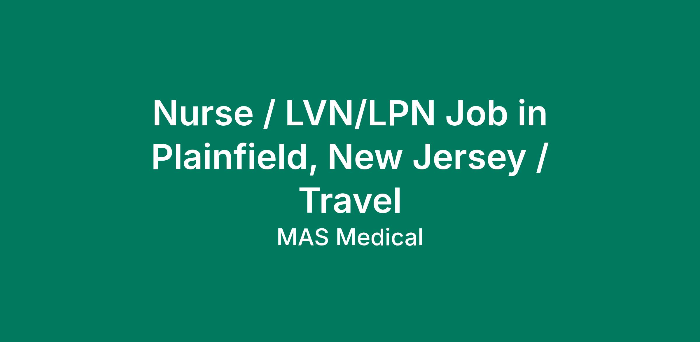 Nurse / LVN/LPN Job in Plainfield, New Jersey / Travel