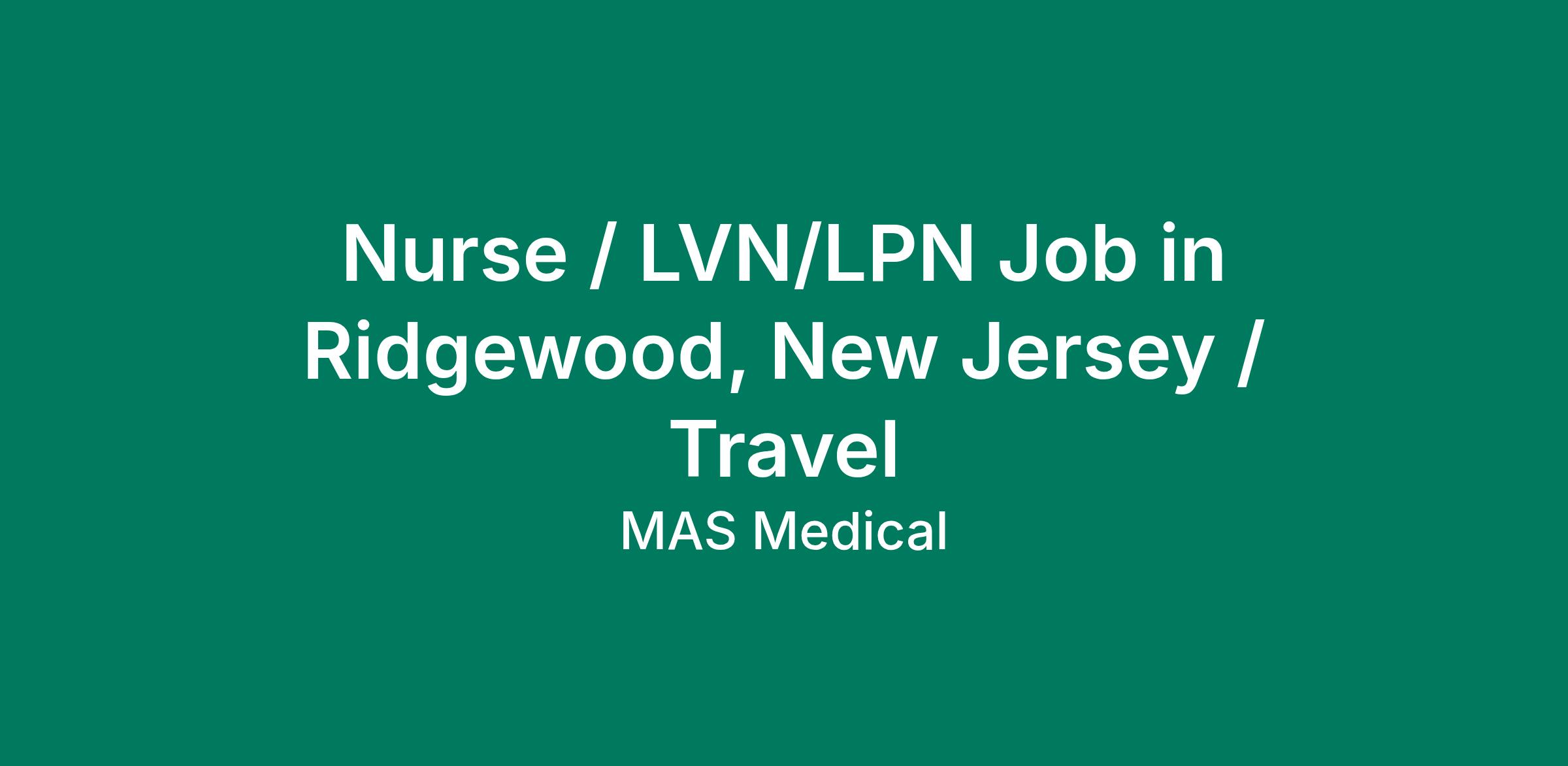 Nurse / LVN/LPN Job in Ridgewood, New Jersey / Travel