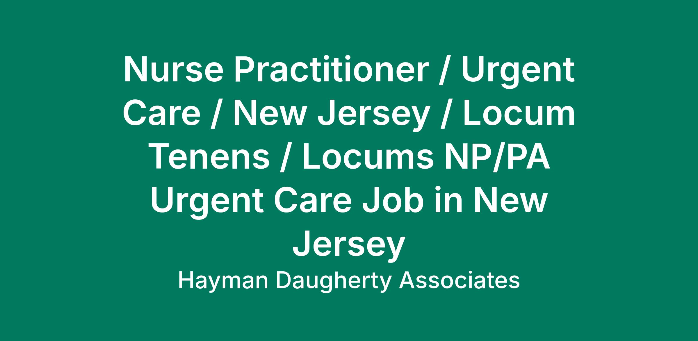Locum Urgent Care NP/PA needed in New Jersey Coverage dates: 6/20/2022 - 12/30/2022 Shift is Monday - Sunday, 8:30am-8:30pm. The candidate must be family nurse practitioners in order to be considered. Willing to look at any provider who can work 4+ weekend shifts per month (current provider pool requirement). EMR: Cerner. Located near Mount Ephraim,NJ. If you are interested in hearing more about this opportunity, please call or text MD Staff at . You can also reach us through email at . Please reference Job ID # j-69437.