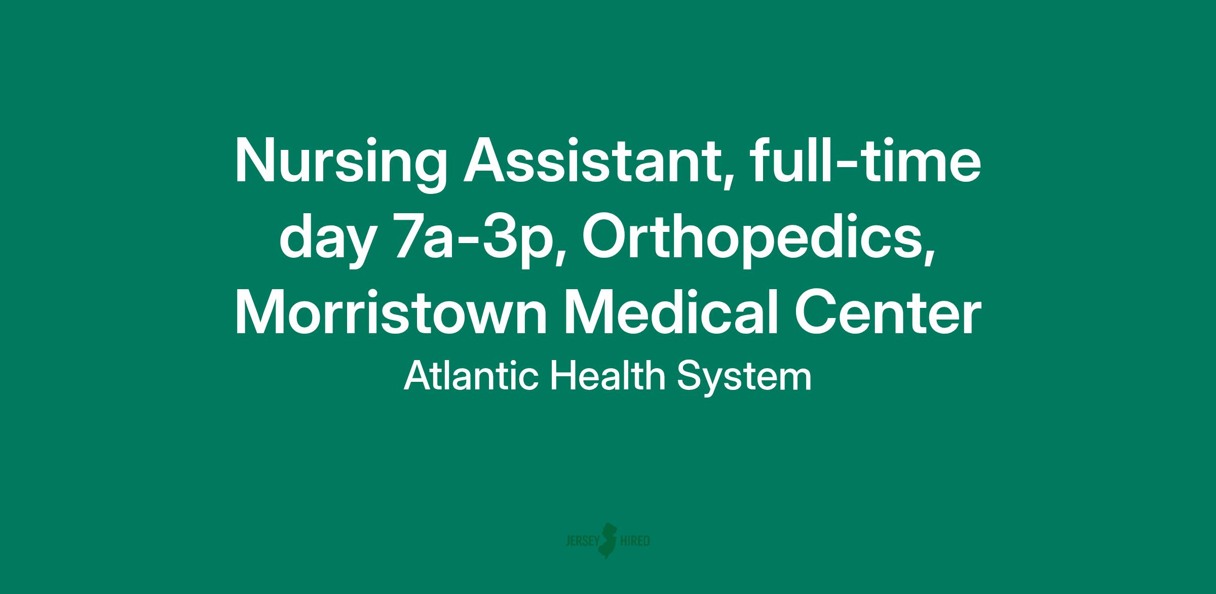 Nursing Assistant, full-time day 7a-3p, Orthopedics, Morristown Medical Center