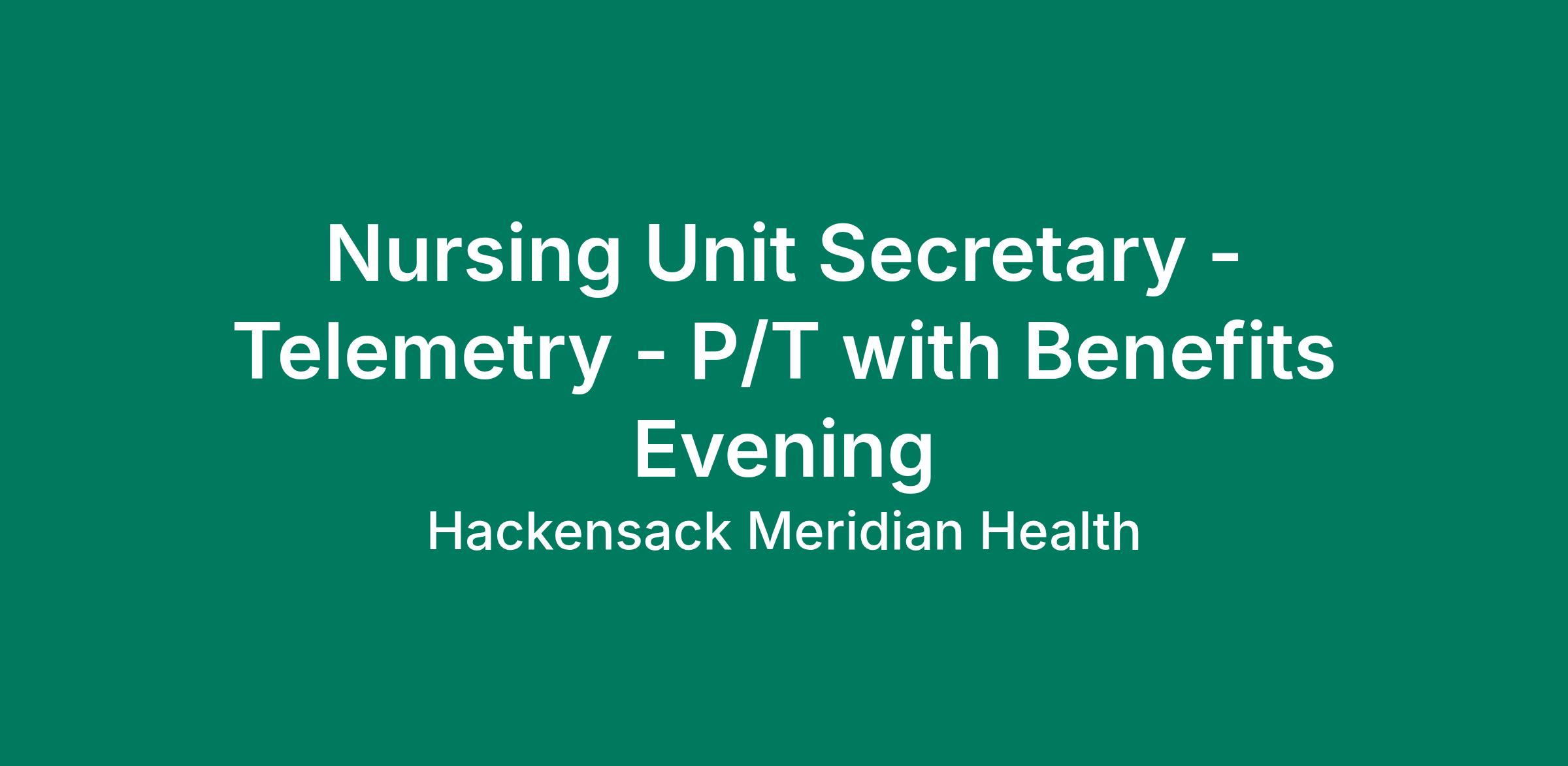 Nursing Unit Secretary - Telemetry - P/T with Benefits Evening