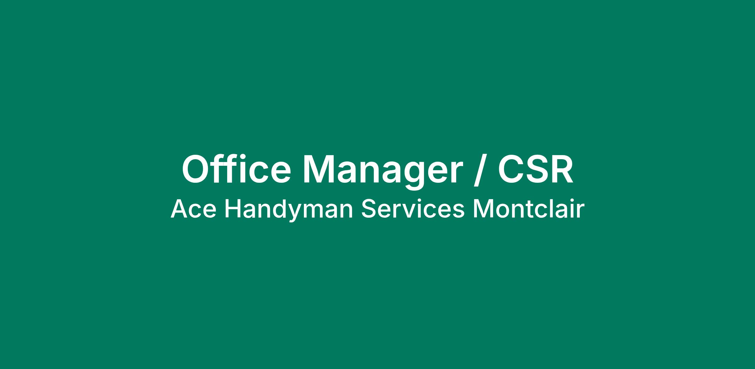 Ace Handyman Services Montclair is looking for a highly organized and customer-focused Office Manager to help run the daily operations of our growing home repair and improvement business.