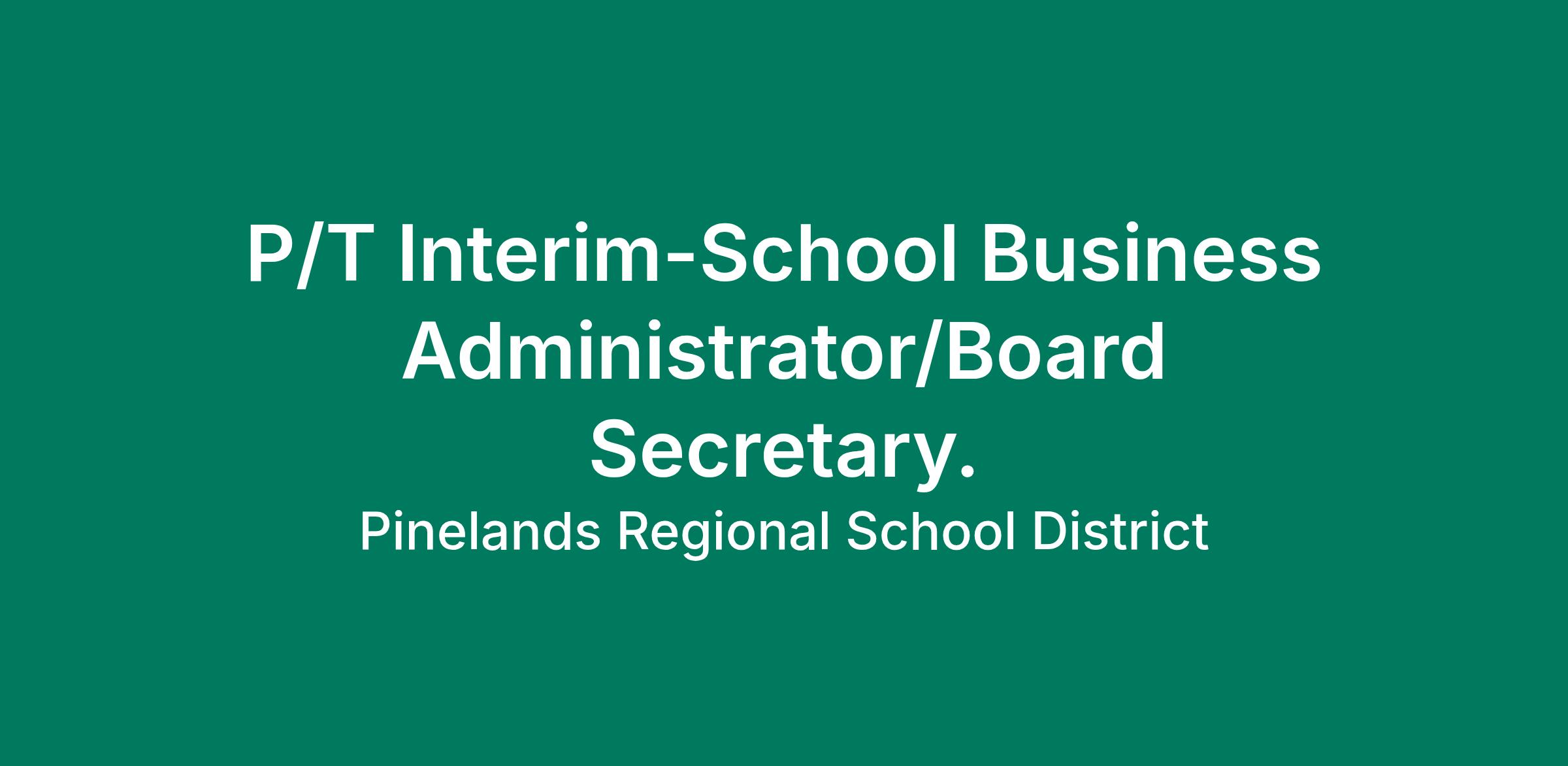 Pinelands Regional School District, a regional 7th-12th grade school district located in southern Ocean County, has an anticipated opening for a School Business Administrator/Board Secretary.