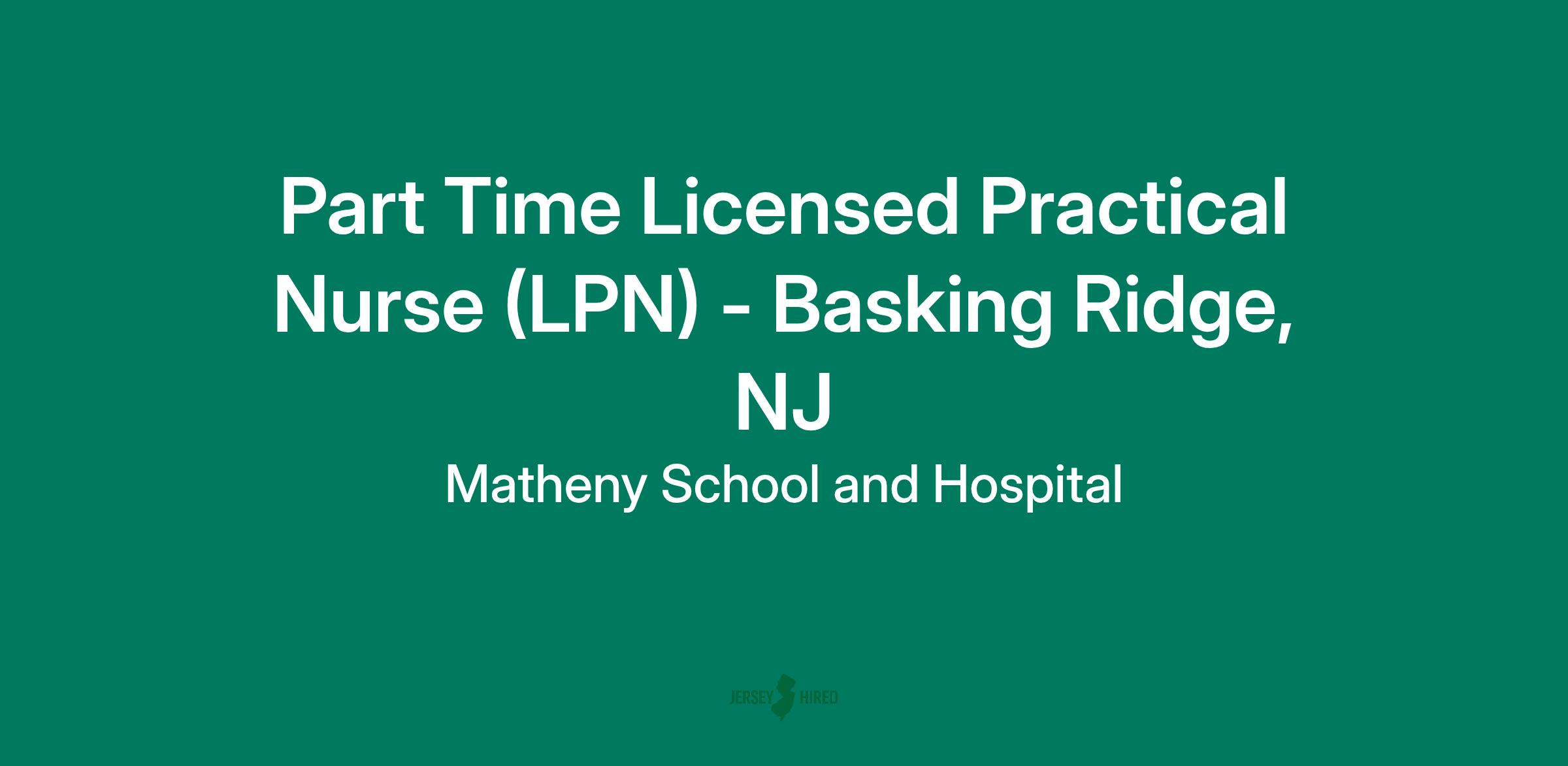 Matheny Medical and Educational Center has career opportunities available for Part Time Licensed Practical Nurses (LPNs) at our Basking Ridge, NJ Community Residence.