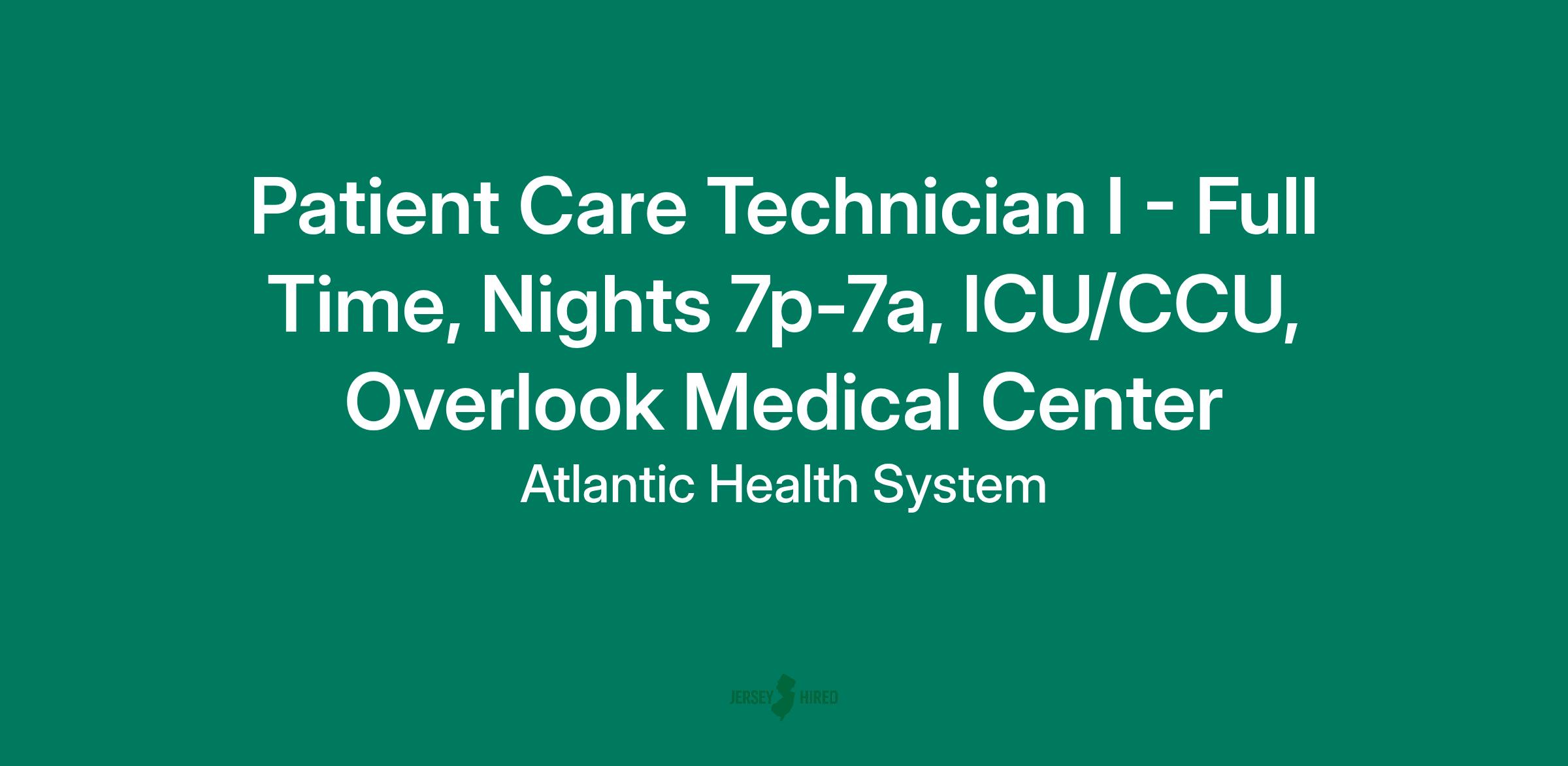 Patient Care Technician I - Full Time, Nights 7p-7a, ICU/CCU, Overlook Medical Center
